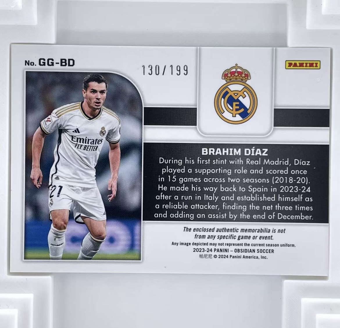2023-24 Panini Obsidian Brahim Díaz 布拉西姆 卜拉欣 迪亚斯 西班牙 皇家马德里 皇马 黑曜石 199编 物料 球衣切割 收藏必备