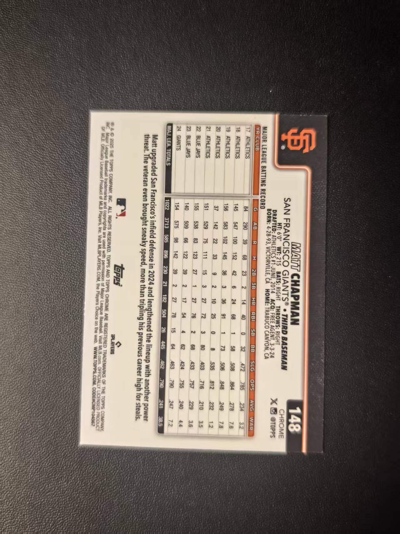 2025 Topps Chrome Matt Chapman TC棒球 麦特 查普曼 队徽霓虹灯  折射 巨人 SSP 专收必备 瑕疵如图