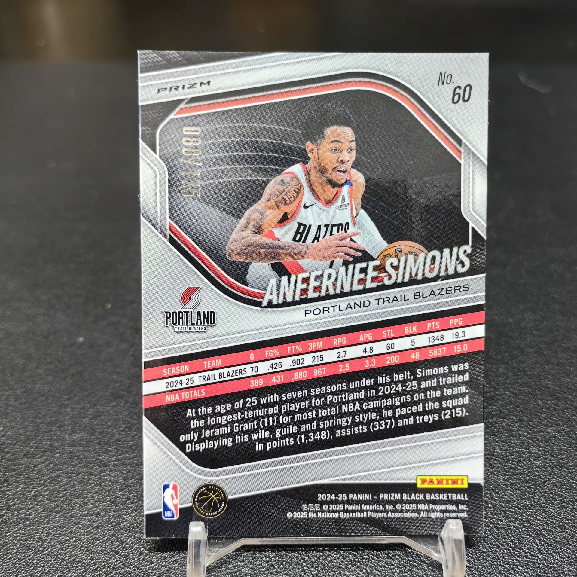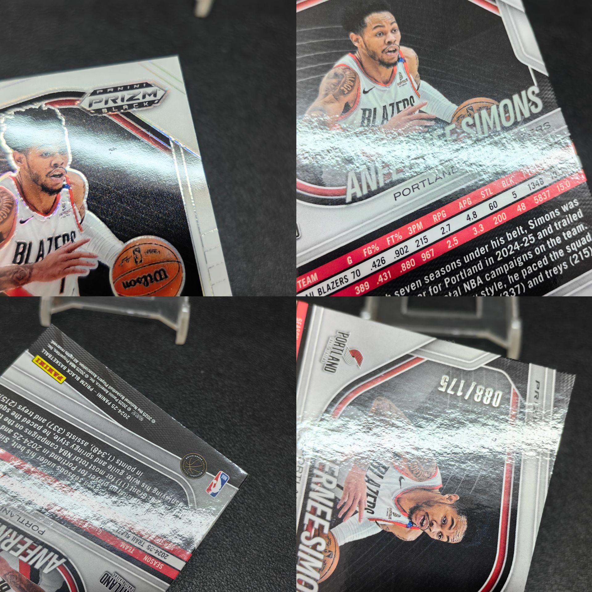 【浩行拍卖 截标预付82%】2024-25 panini Prizm black anfernee simons 开拓者 安芬尼 西蒙斯 白折 折射 88/175编 专收必备 瑕疵看图「寒光」1104C01龘