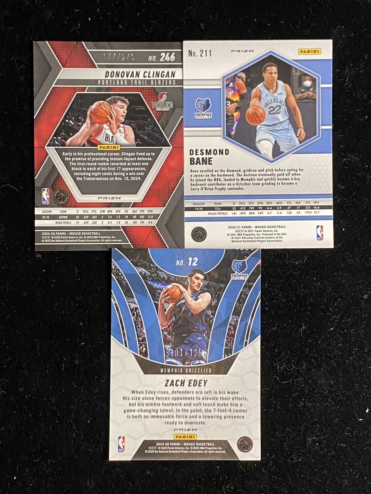 2024-25 Panini Mosaic Donovan Clingan RC 【大彪代拍预付90%】马赛克 多诺万 克林根 扎克 伊迪 贝恩 带编 折射 125/249编 lot 不保卡品 洁世一