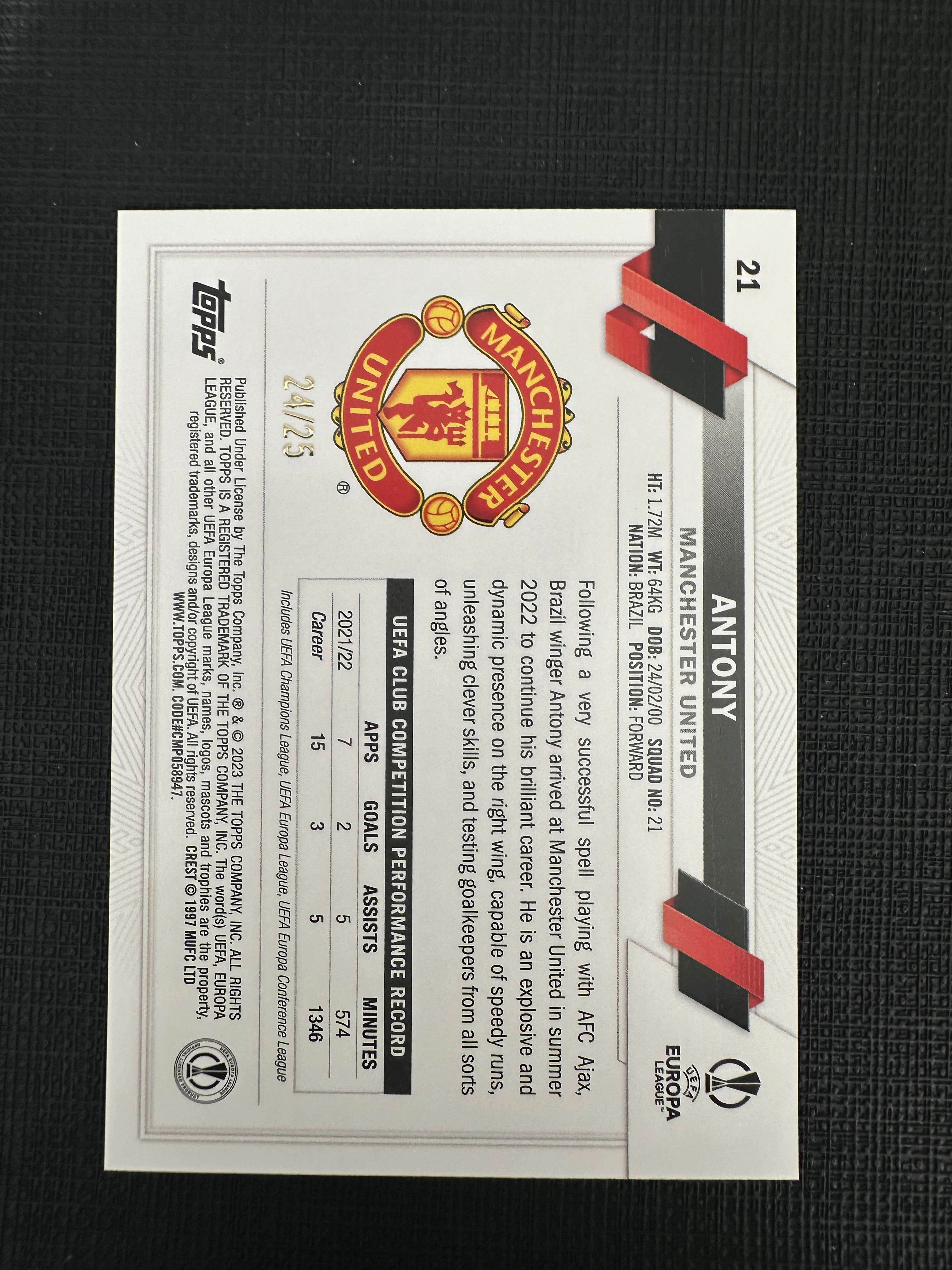 2024 Topps  UCC欧冠 安东尼 /25编 橙折 低编 阿贾克斯 转会曼联 antony 皇家贝蒂斯 【默认微瑕一日一快递 不累计 不发到付】卡o