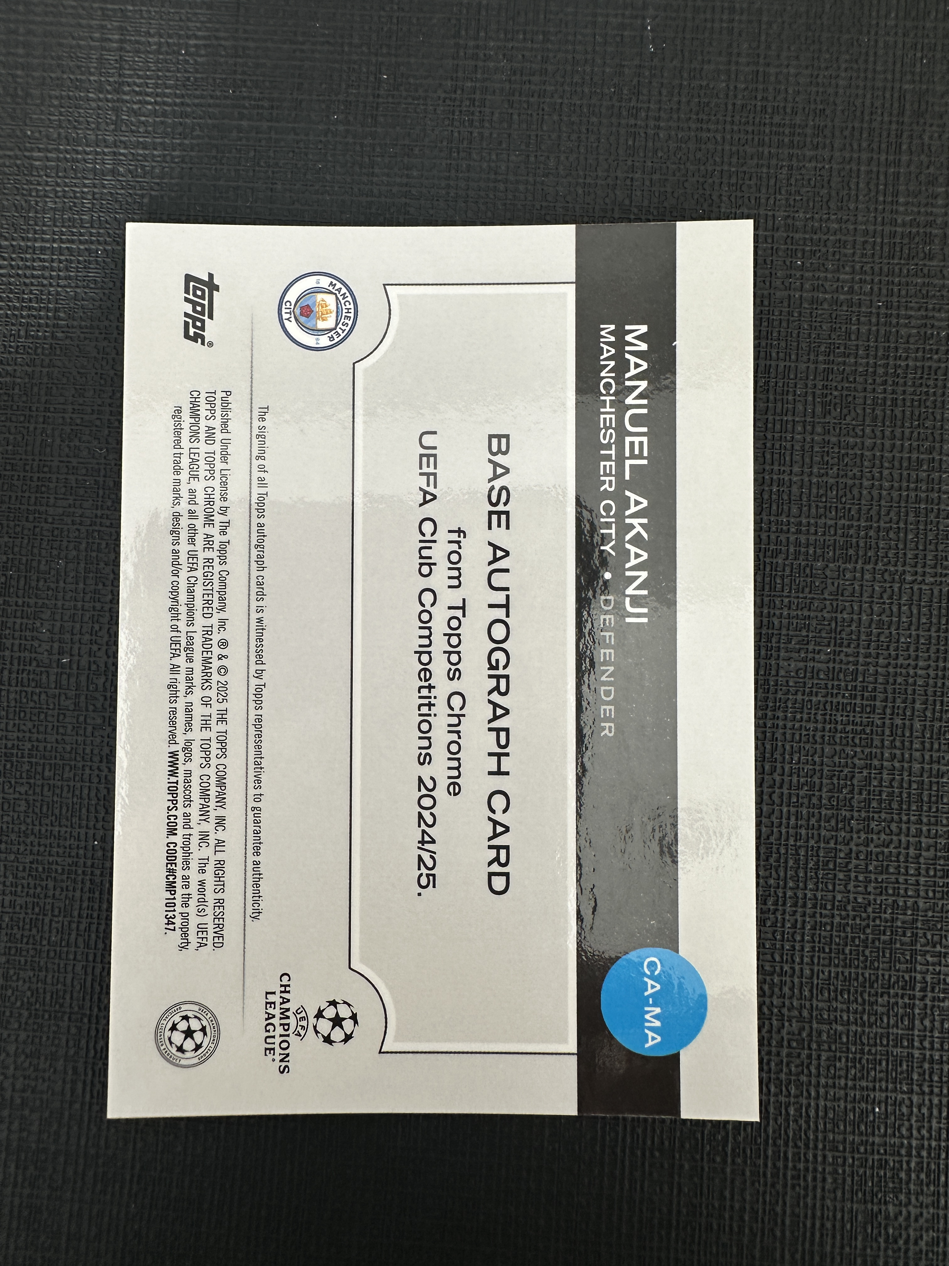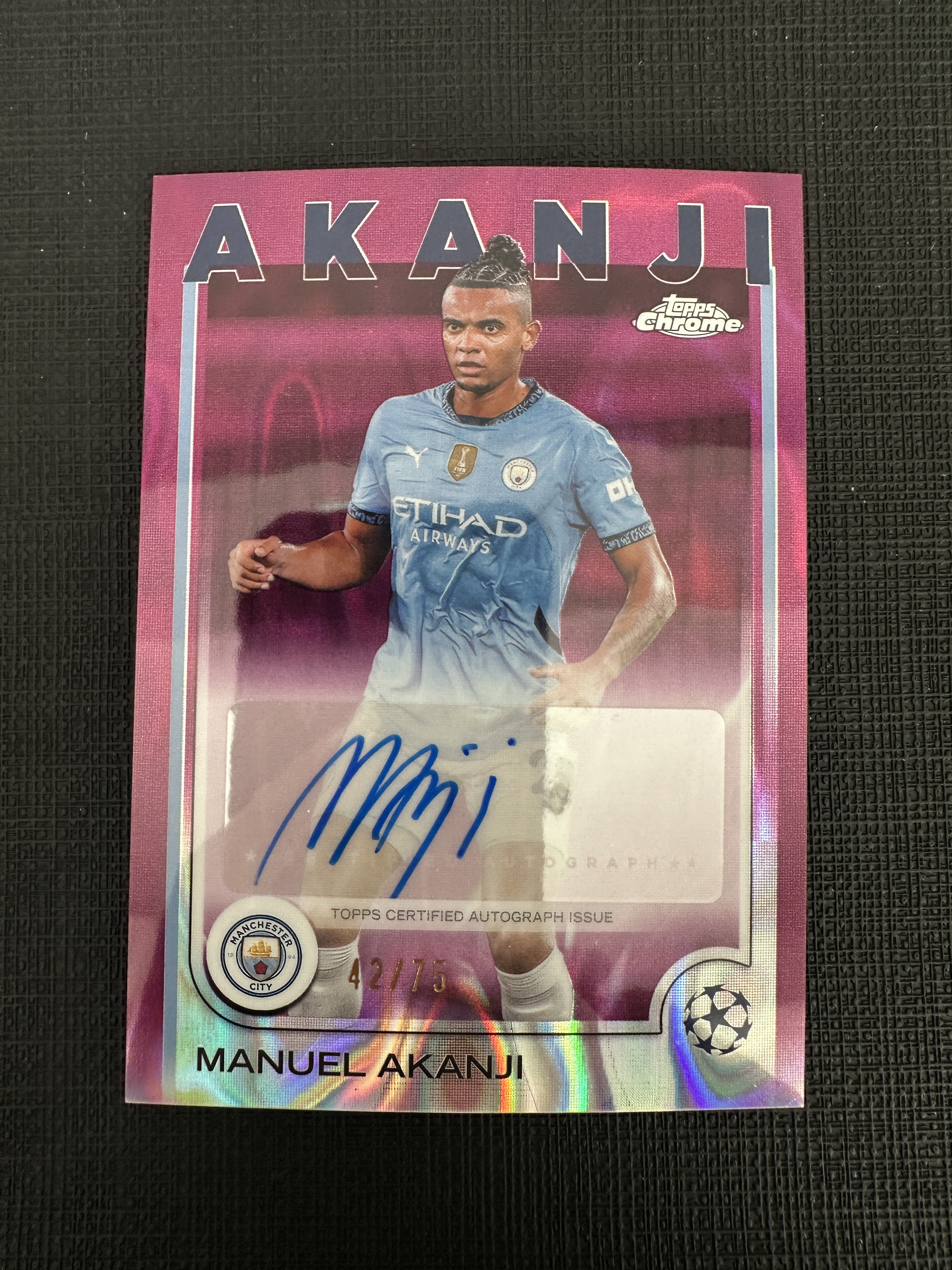 2025 Topps Chrome Manuel Akanji 欧冠 TC 曼城 阿坎吉 75编 首编 紫熔岩折 变形虫折 签字 【默认微瑕一日一快递 不累计 不发到付】卡o