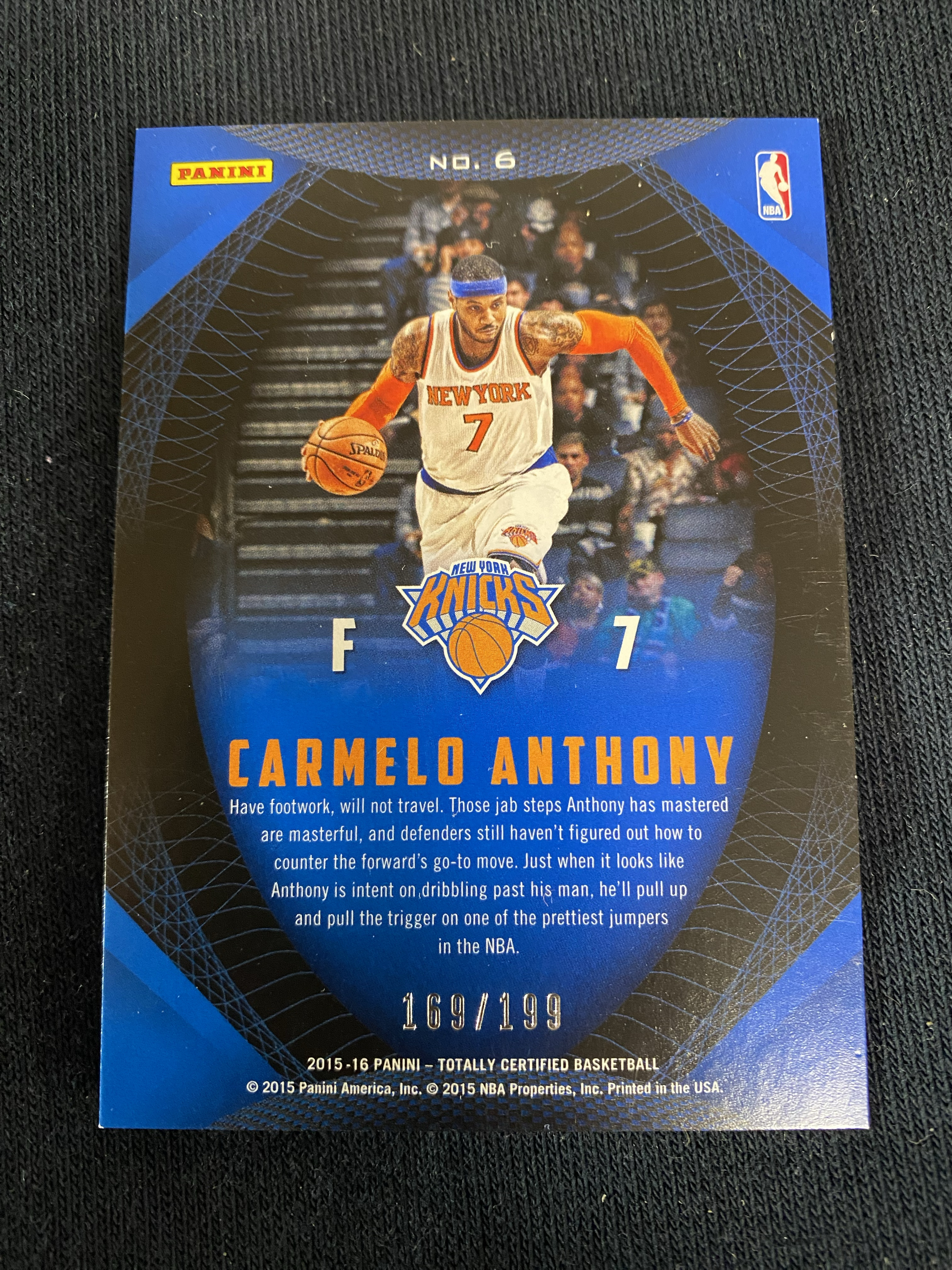 2015-16 Panini Totally Certified Carmelo Anthony 经典 老特 折射 卫生巾 169/199 卡梅隆 安东尼 掘金 尼克斯 火箭 湖人 卡品如图 收藏必备