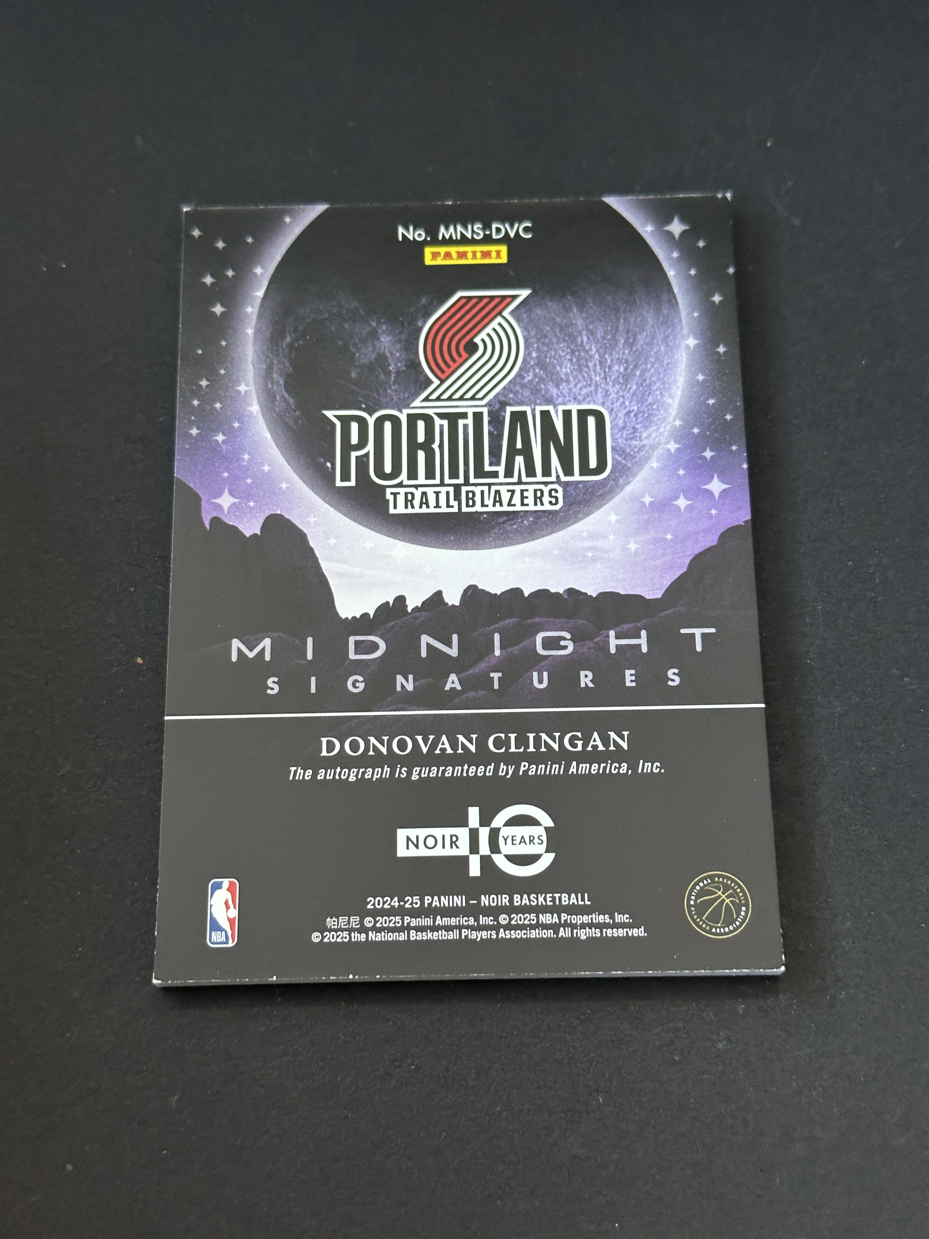 2024-25 Panini Noir Donovan Clingan RC 开拓者 小杨队友 诺尔系列 多诺万 克林根 新秀 49编 签字 镜面 卡签 午夜签 潜力新秀 卡品细节如图