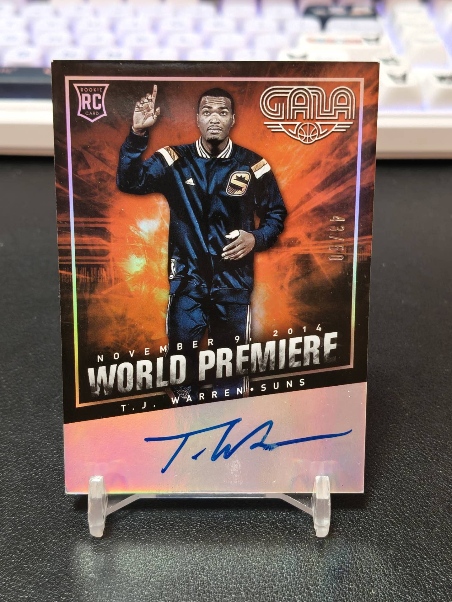 【浩行拍卖 截标预付82%】2014-15 panini gala tj warren 太阳 tj 沃伦 RC 新秀 折射 签字 卡签  world premiere 43/50编 专收必备 瑕疵看图「寒光」1104D02兿