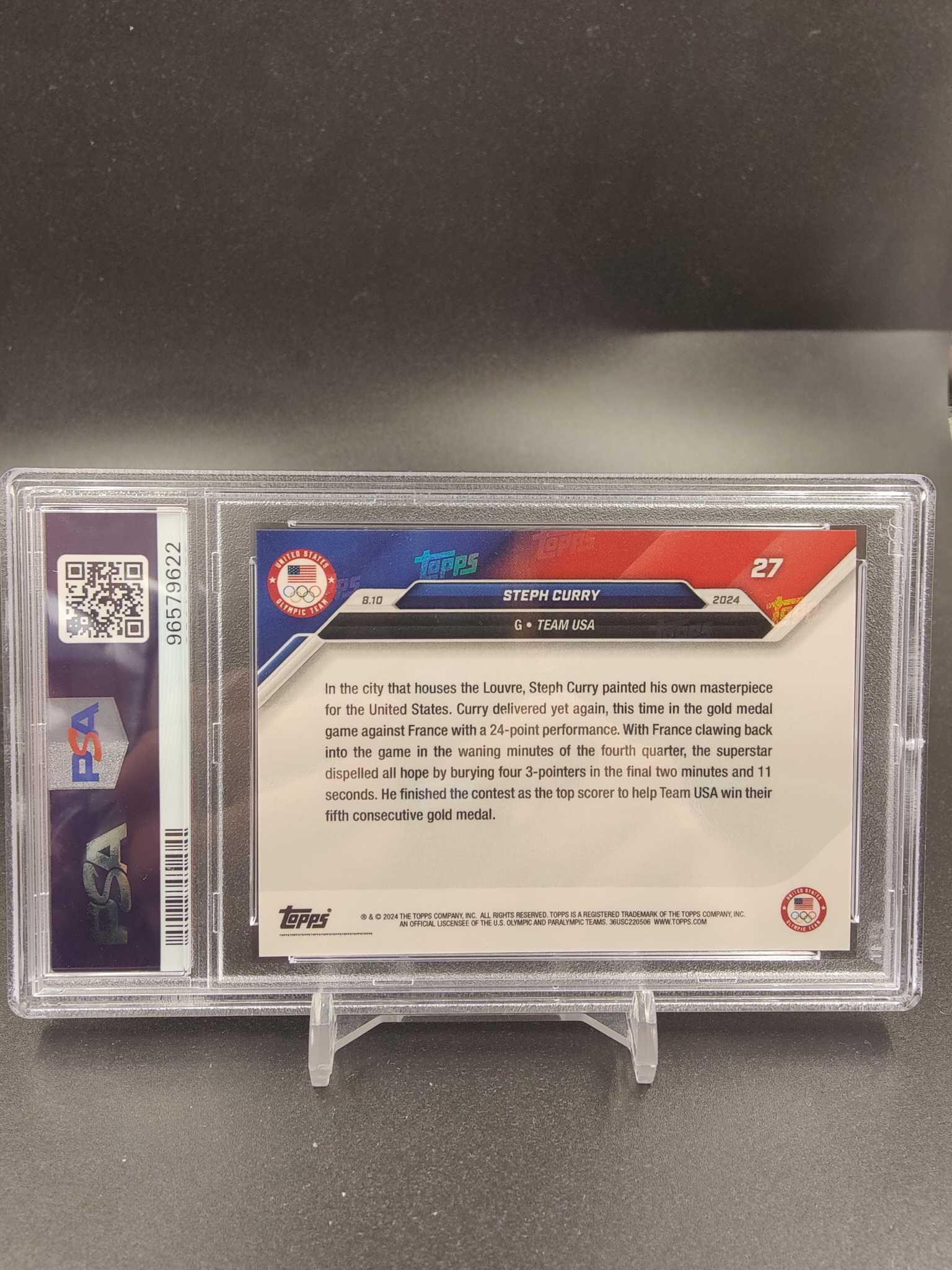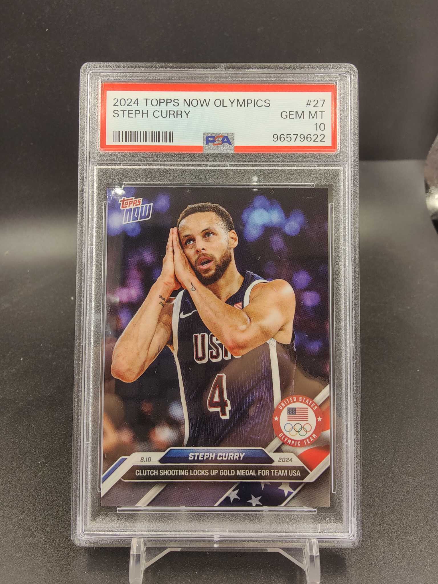 2024 Topps Now Olympics Stephen Curry 斯蒂芬 库里 勇士 总冠军FMVP 历史三分王 75大超巨 USA美国梦之队 奥运会冠军 经典晚安选图 PSA10分 完美品相