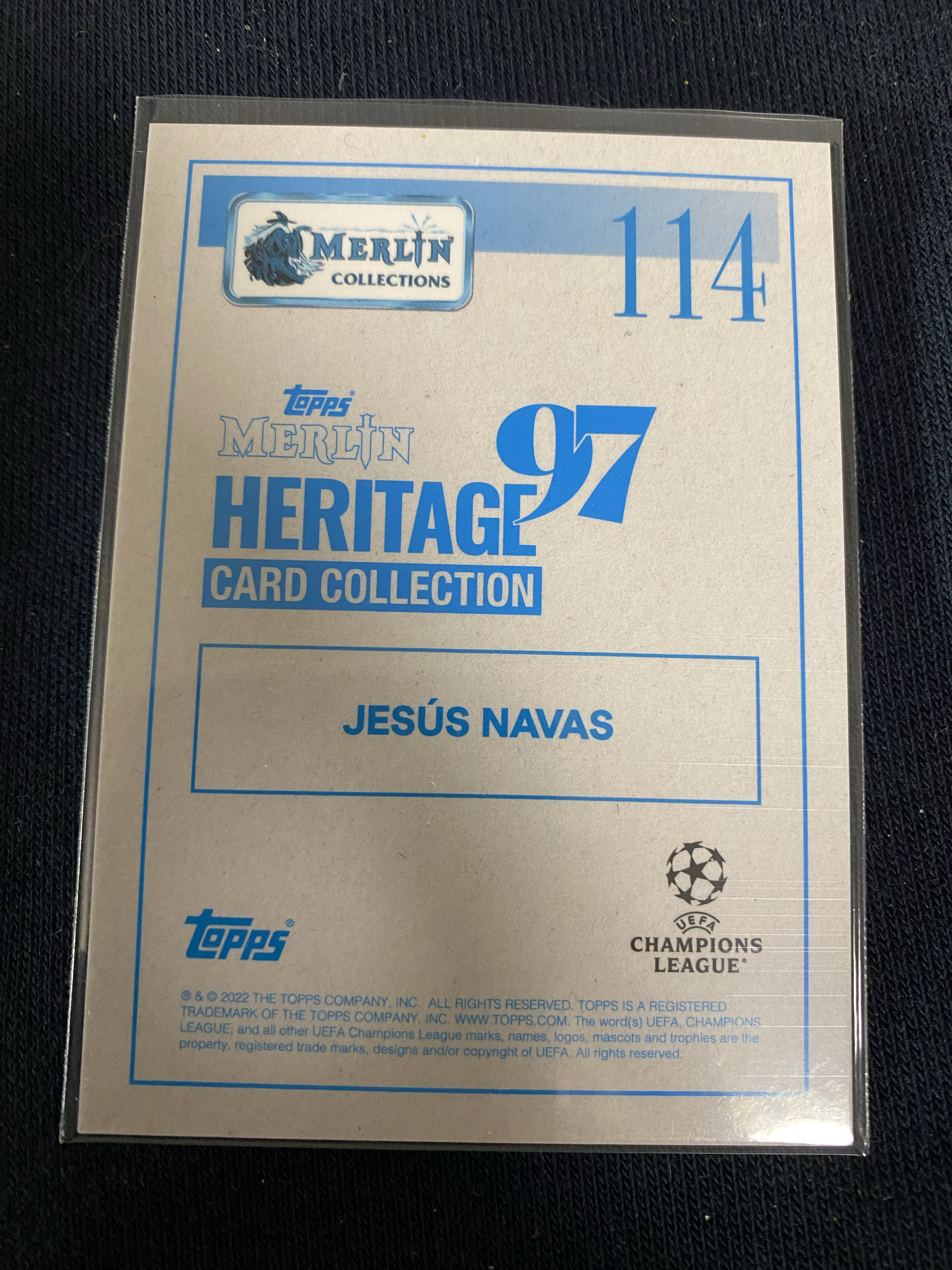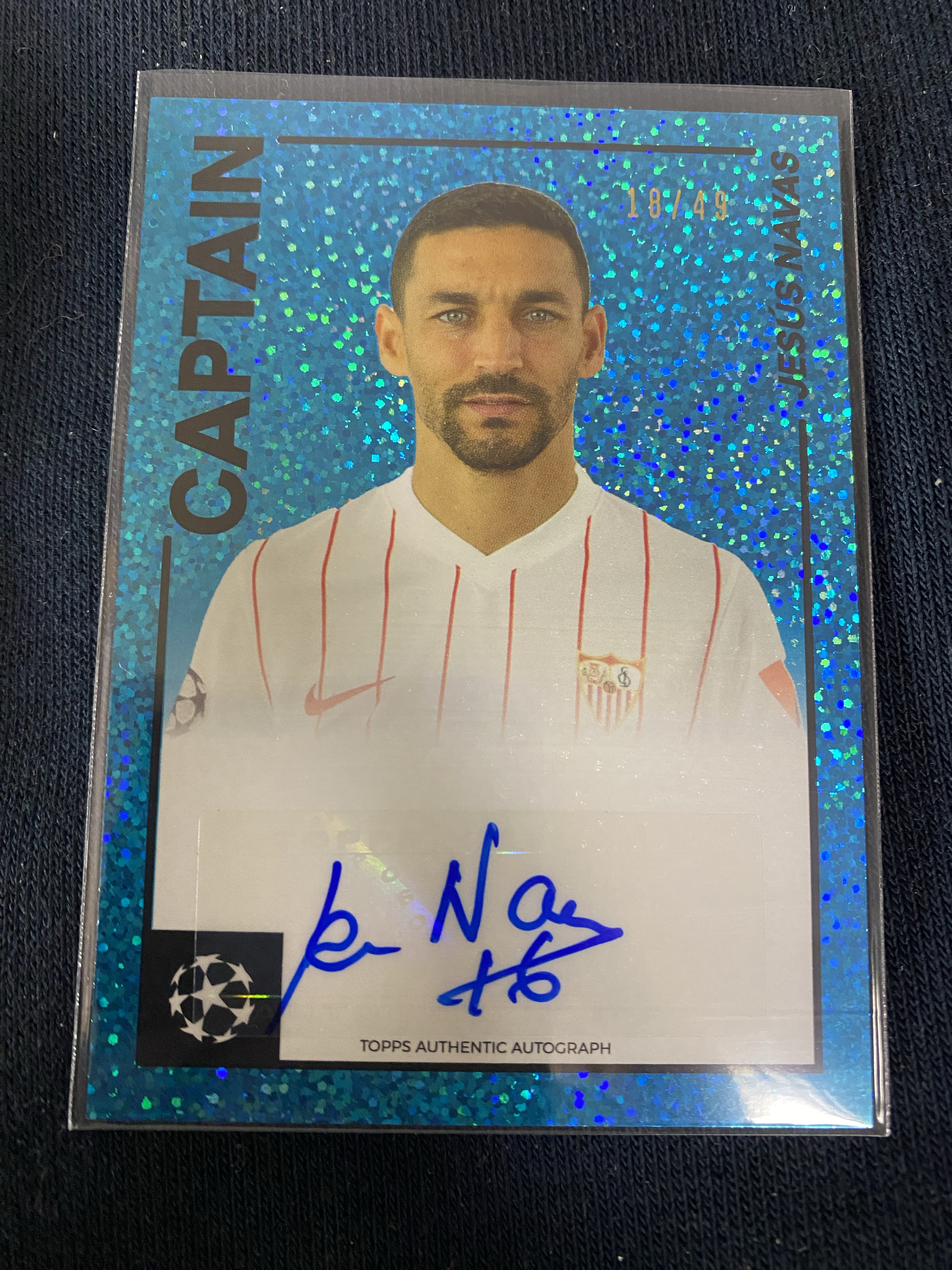 2022-23 Topps Merlin chrome Jesús Navas 梅林 折射 蓝星星折 带编 18/49 签字 贴签 队长 赫苏斯 纳瓦斯 塞维利亚 卡品如图 收藏必备