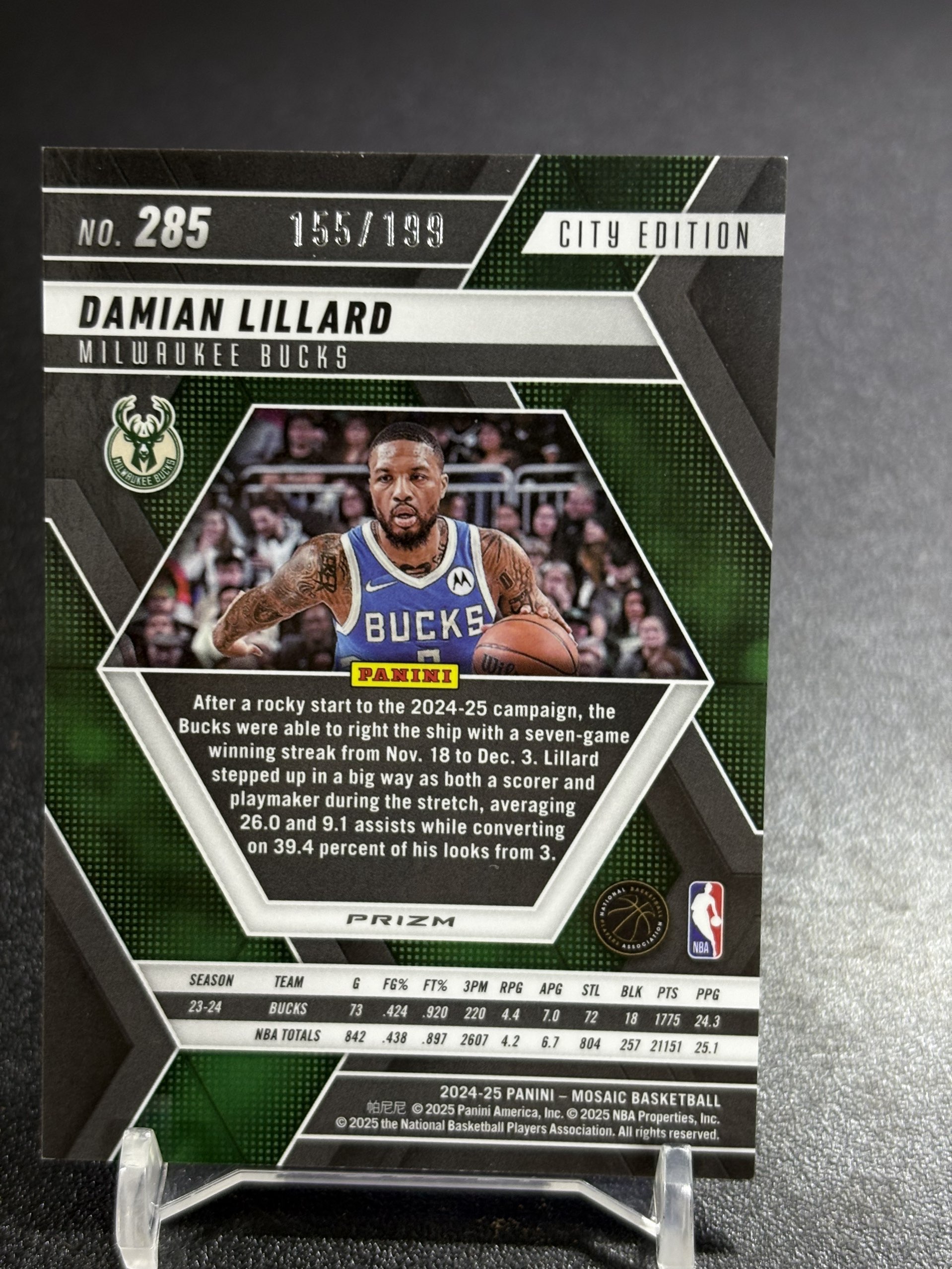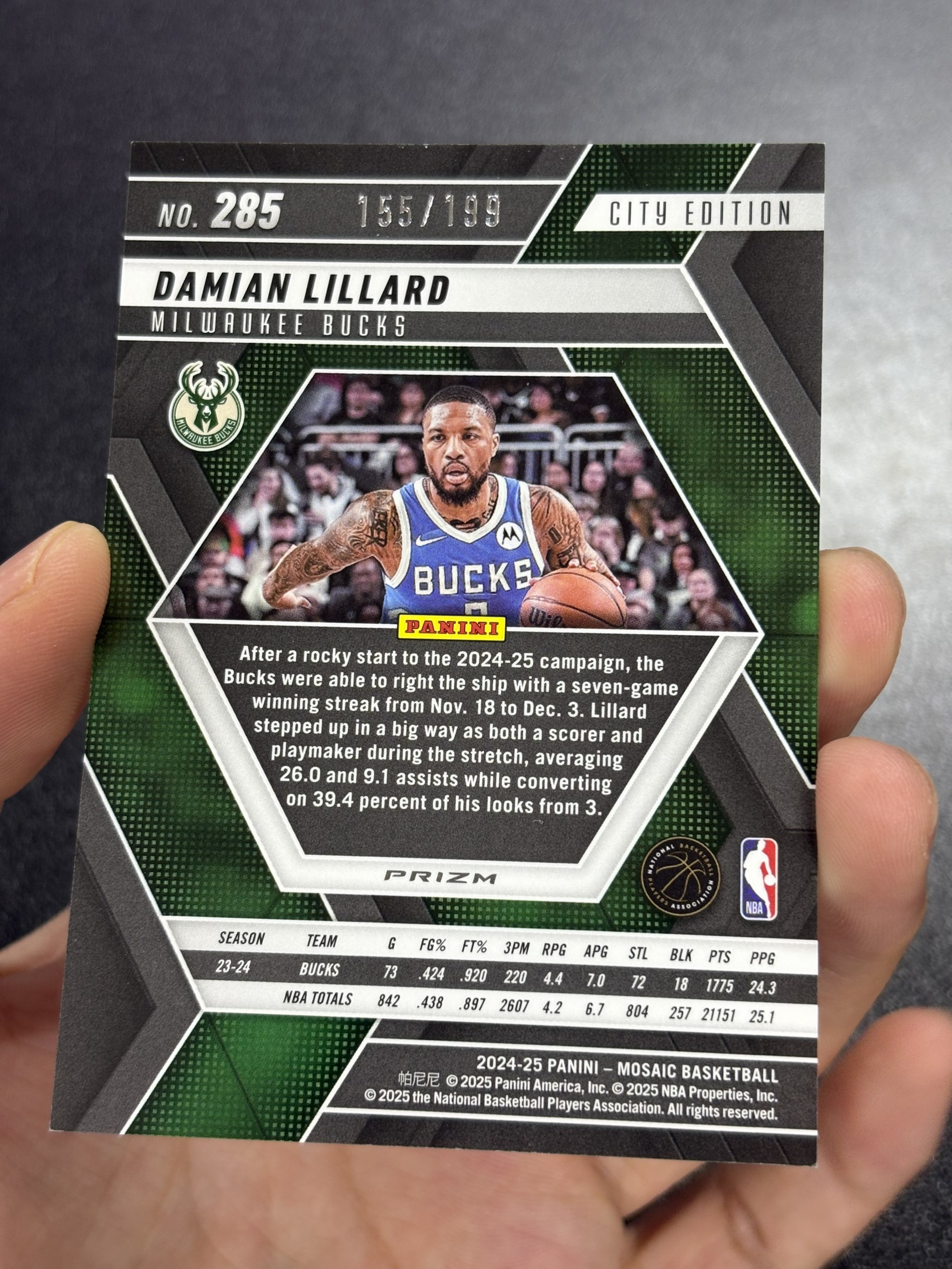 【浩行拍卖 截标预付82%】2024-25 panini mosaic damian lillard 马赛克 雄鹿 达米安 利拉德 马赛克折 蓝折 折射 city edition 155/199编 瑕疵看图 专收必备「寒光」1104S06鍾