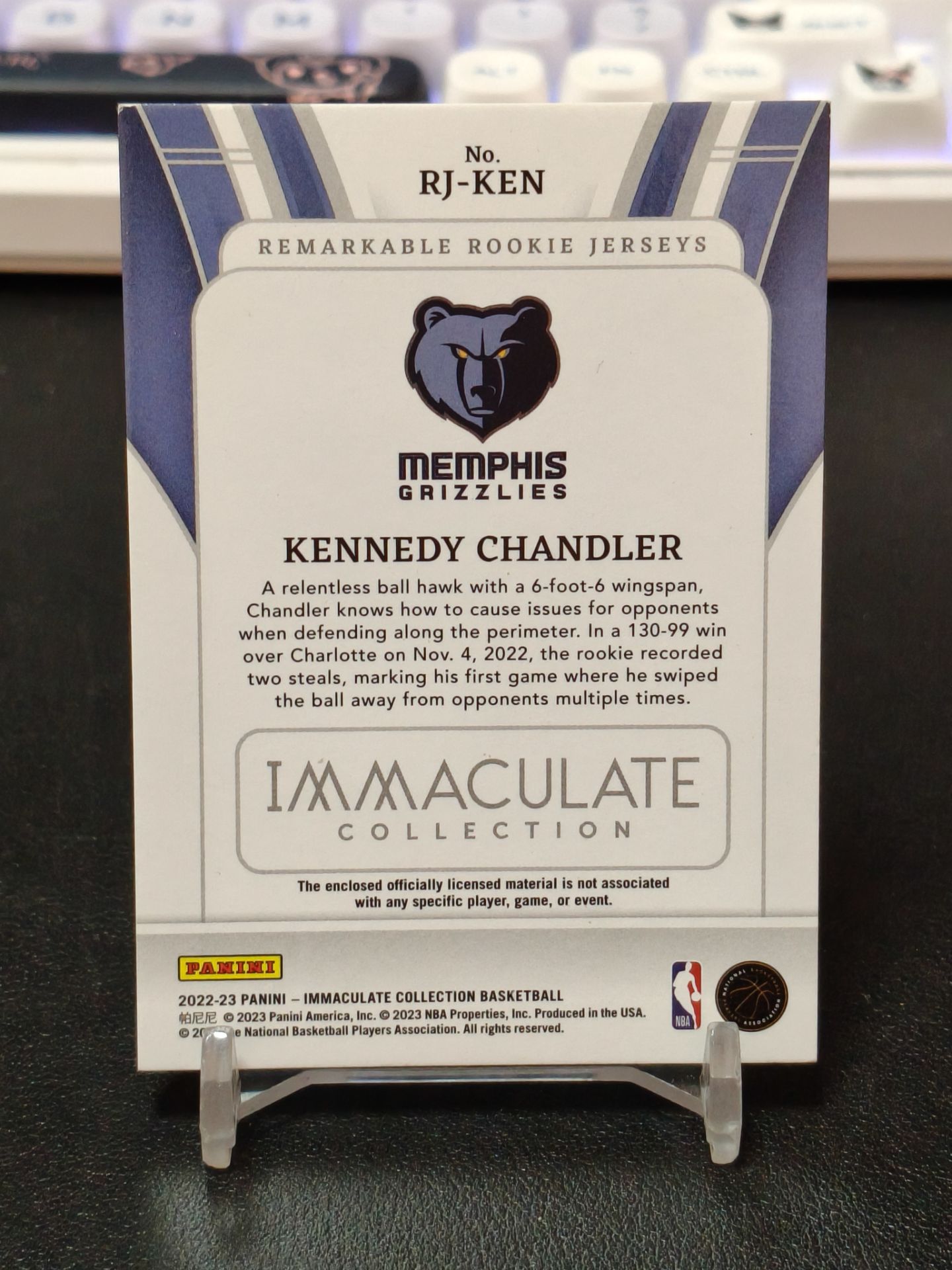 【浩行拍卖 截标预付82%】2022-23 panini immaculate kennedy chandler 灰熊 钱德勒 RC 新秀 球衣 物料 18/99编 专收必备 瑕疵看图「粉蓓」1104G02兿
