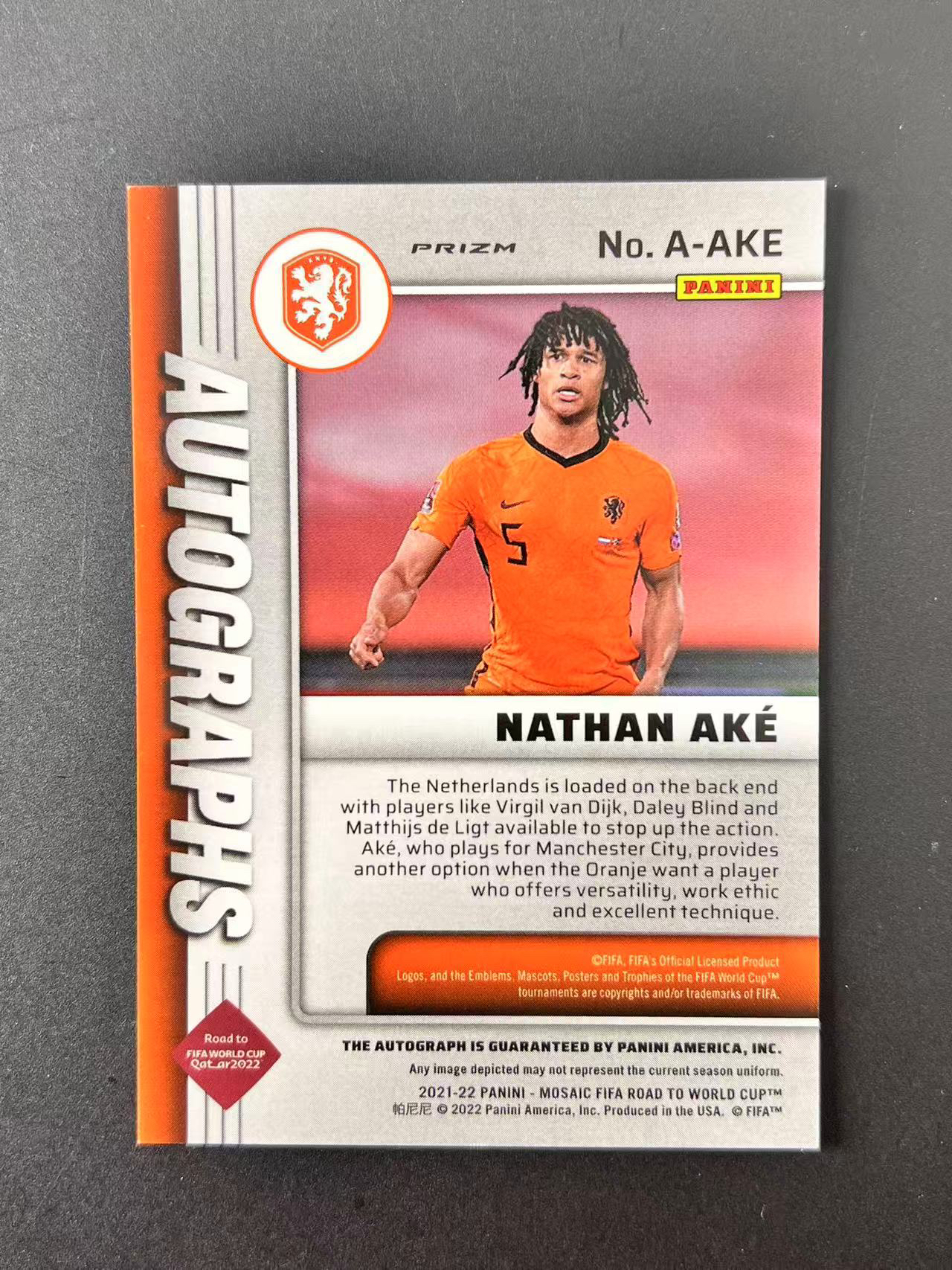 2021-22 Panini Mosaic Nathan Ake【卡老鼠代卖】马赛克 世界杯 阿克 签名 签字 银马赛克折 荷兰 曼城 暴富哥 寄付