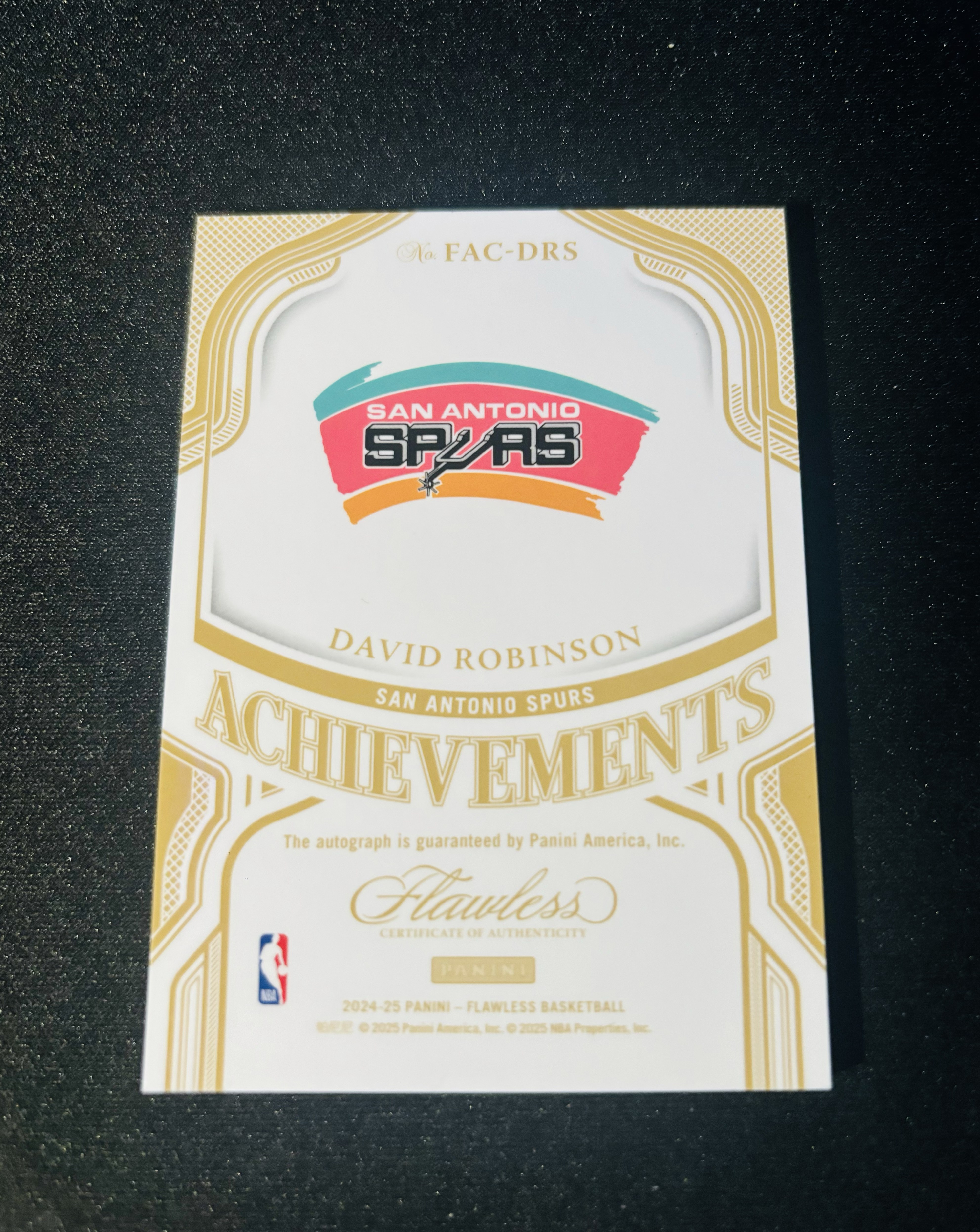 2024-25 Panini Flawless David Robinson 手提 马刺 海军上将 大卫 罗宾逊 25编 白金闪 成就签 签字 卡签 经典捧杯选图 收藏必备 卡品如图