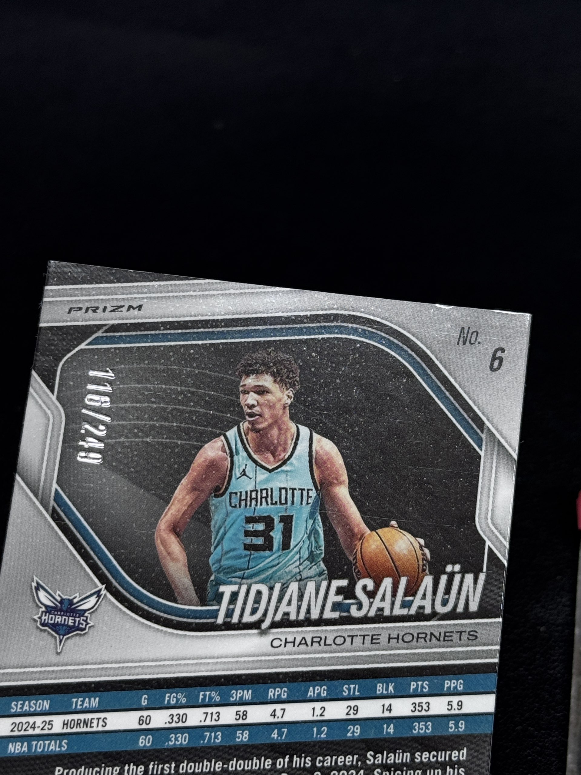 【浩行拍卖 截标预付82%】2024-25 panini prizm black tidjane salaun 黄蜂 提贾尼 萨隆 RC 新秀 银瀑布折 折射 116/249编 专收必备 瑕疵看图「寒光」1104B03裊