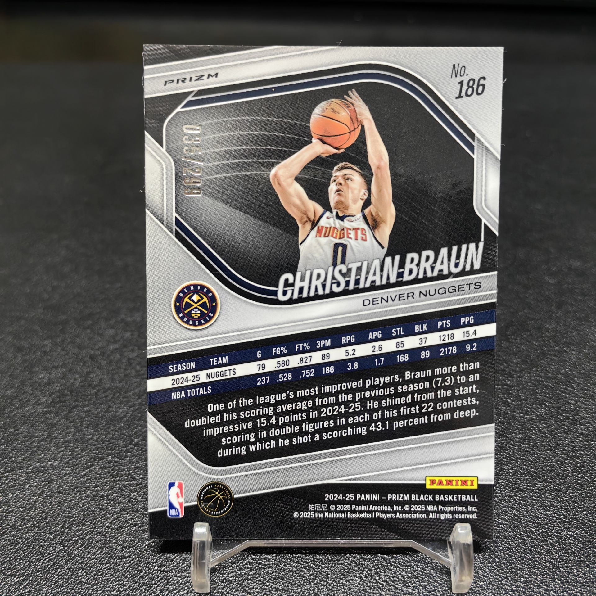【浩行拍卖 截标预付82%】2024-25 Panini Prizm Black christian braun 掘金 克里斯蒂安 布劳恩 红折 折射 35/299编 专收必备 瑕疵看图「寒光」1104C02龘