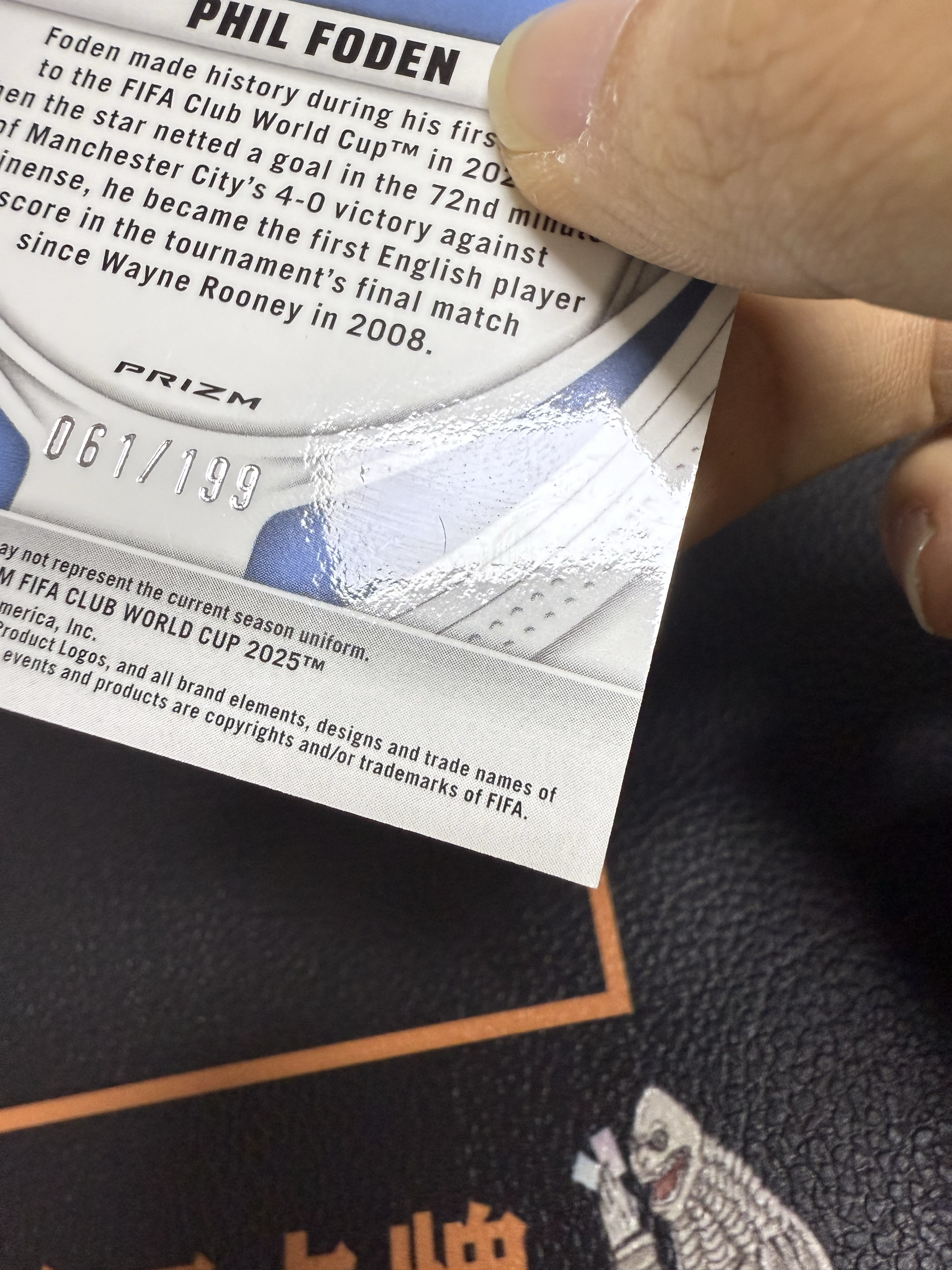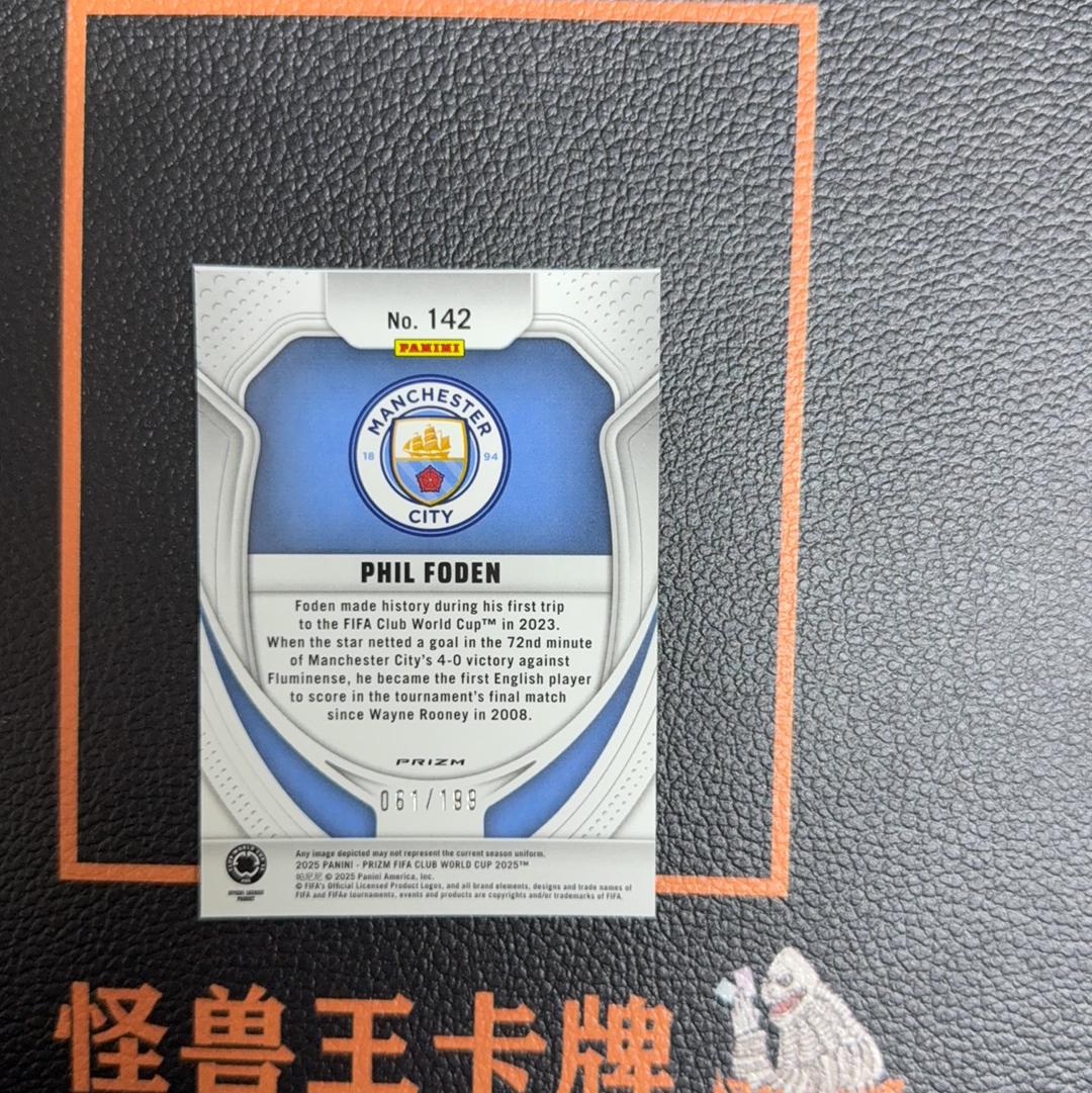 (怪兽拍卖) GSW-G05 2025 Panini Prizm Phil Foden 世俱杯pz 元年 曼城 菲尔 福登 199编 红折 微瑕如图3