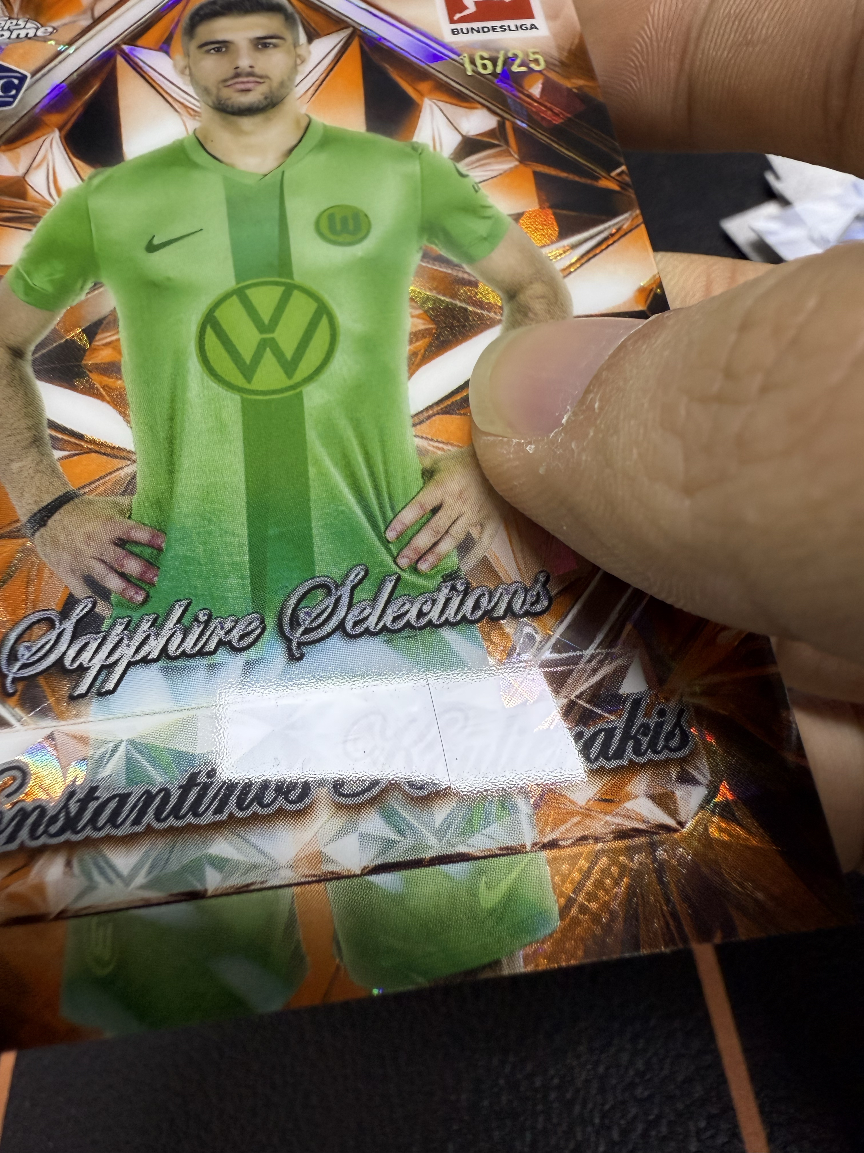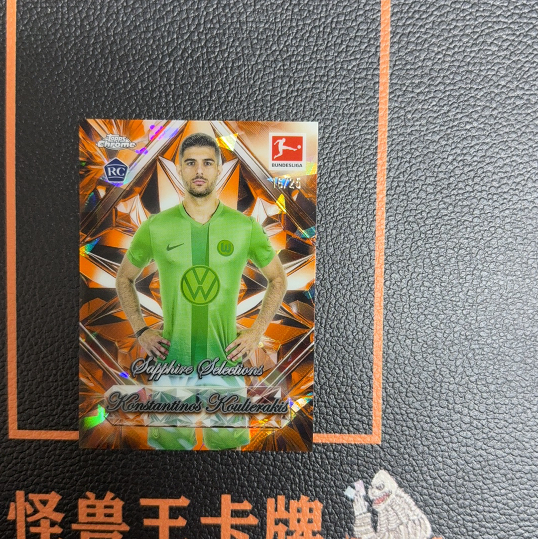 (怪兽拍卖) GSW-G05 2025 Topps Chrome Konstantinos Koulierakis 德甲蓝宝石 库列拉基斯 新秀RC 精选特卡 16/25编 橙碎冰 微瑕如图3