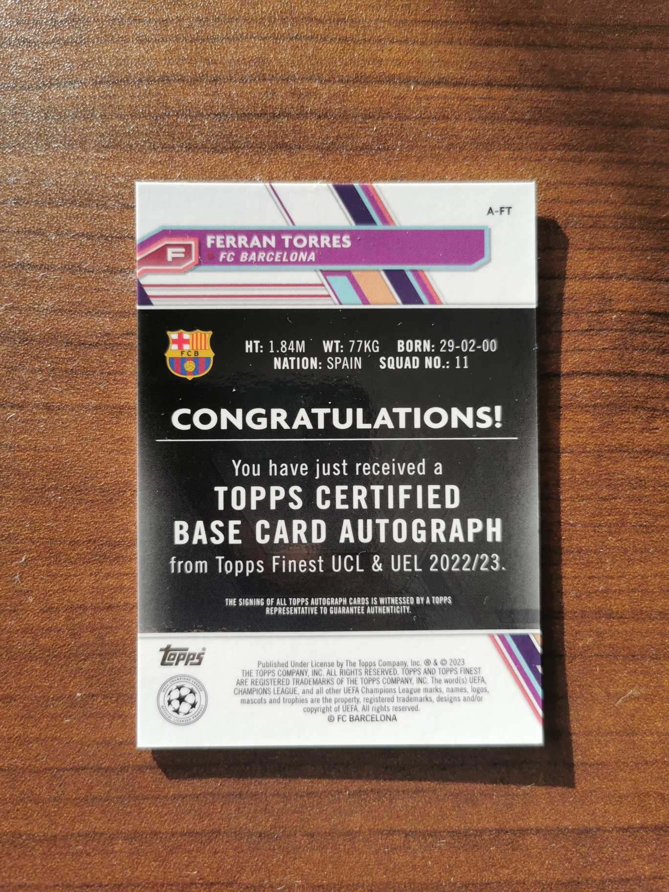 2023 Topps UEFA Champions League Ferran Torres 巴塞罗那 巴萨 费兰 托雷斯 签字 主力前锋 银折 值得收藏 角微有白边 费尔明队友