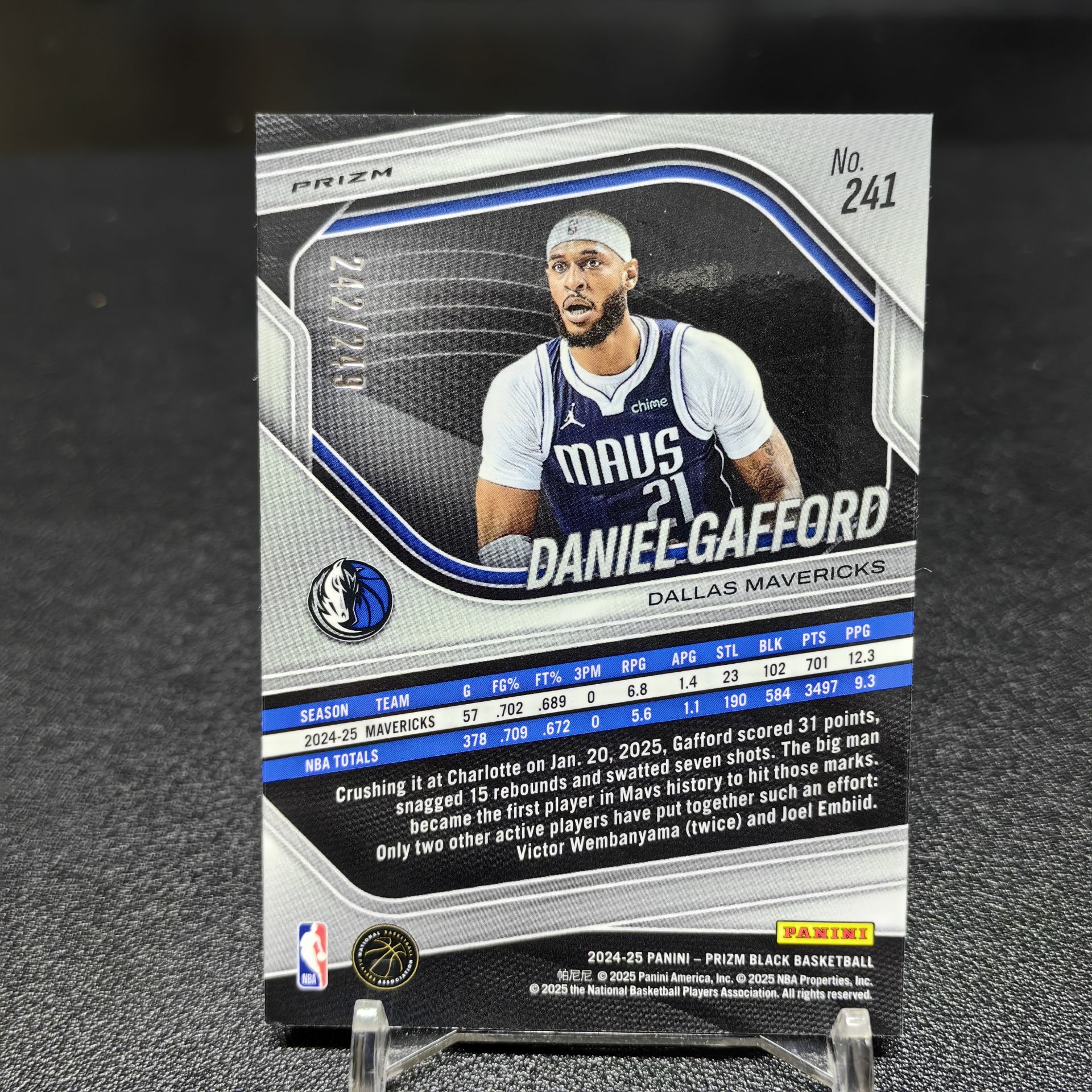 【浩行拍卖 截标预付82%】2024-25 Panini Prizm Black daniel gafford 独行侠 丹尼尔 加福德 银瀑布折 折射 242/249编 专收必备 瑕疵看图「寒光」1104C02龘
