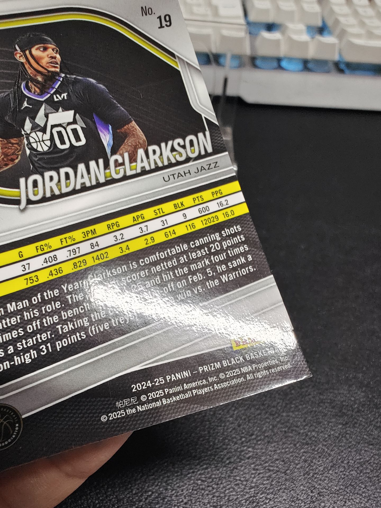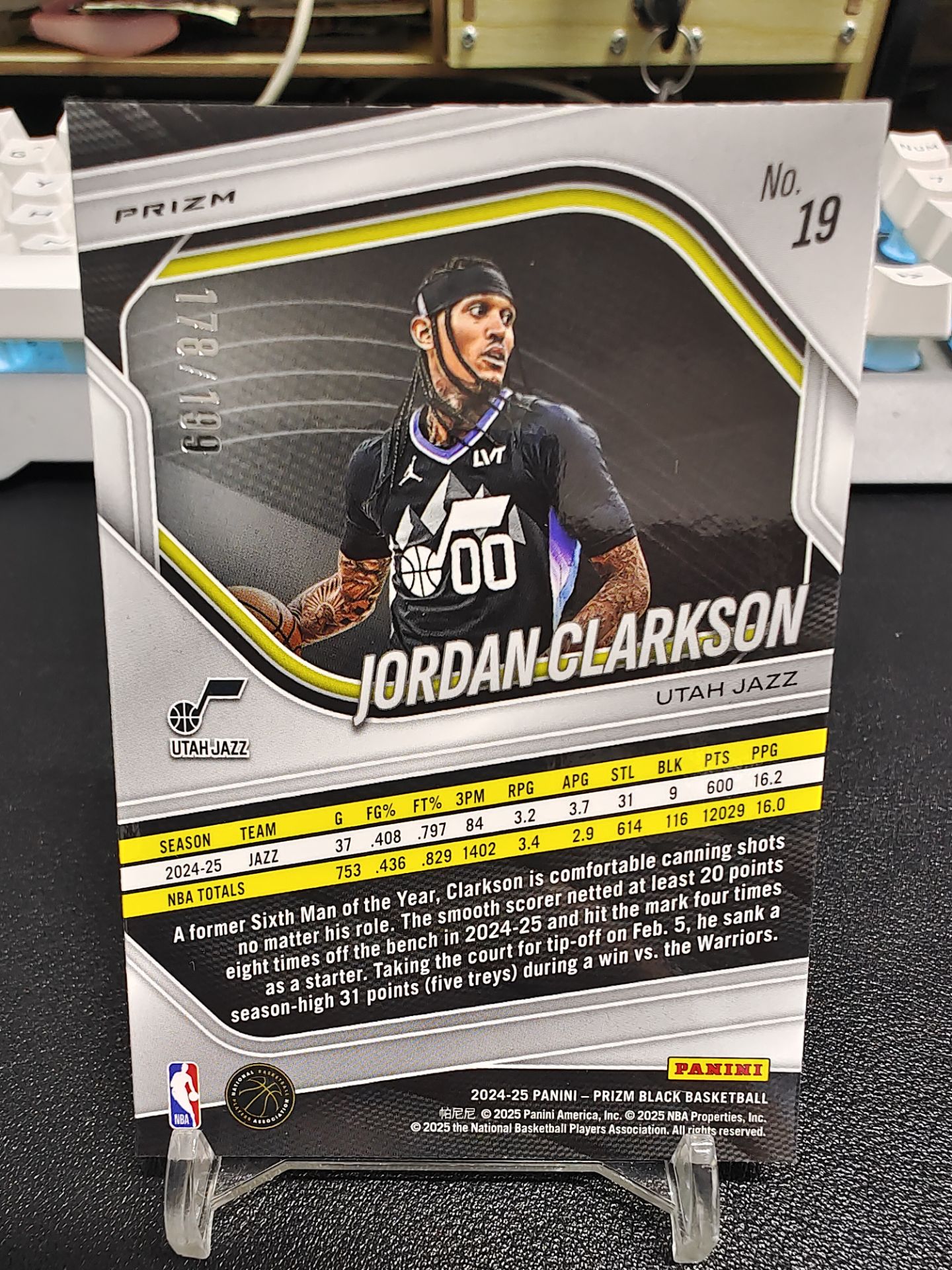 【浩行拍卖 截标预付82%】2024-25 panini prizm black Jordan Clarkson 爵士 乔丹 克拉克森 蓝折 折射 178/199编 专收必备 瑕疵看图「寒光」1104E02恁