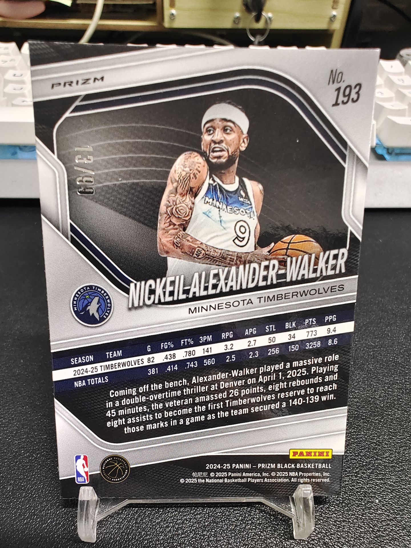 【浩行拍卖 截标预付82%】2024-25 panini prizm black nickeil alexander walker 森林狼 尼基尔 亚历山大 沃克 紫折 折射 13/99编 专收必备 瑕疵看图「寒光」1104E02恁