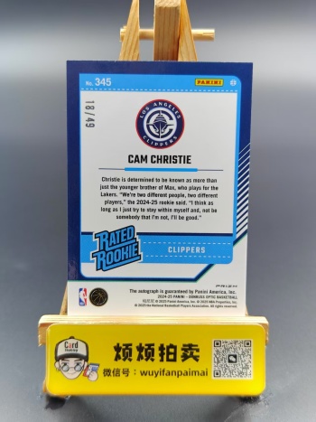 2.参拍:卡品墨迹如图所示(厚卡异形卡等都有正常白边白角,部分系列会有特殊瑕疵),请认真看图后再谨慎出价。不接受任何艺术家买卡,如拍到卡后有任何艺术家行为(包括但不限于在通行卡品里挑瑕疵索要赔偿或退卡等)一律拉黑投诉处理。所卖卡未经描述均为通行品,可能会有细微瑕疵;打包标小卡可能会有不同程度的瑕疵,不保障卡品;评级卡壳和原封砖的磨损不包含在卡品范围内;多张上拍卡品通行的同款卡片随机发货。竞拍前可以私聊要细节图,成交后再以有瑕疵、勿拍等理由退卡的一律拒绝,介意者请勿参拍!参拍即视为已读同意!