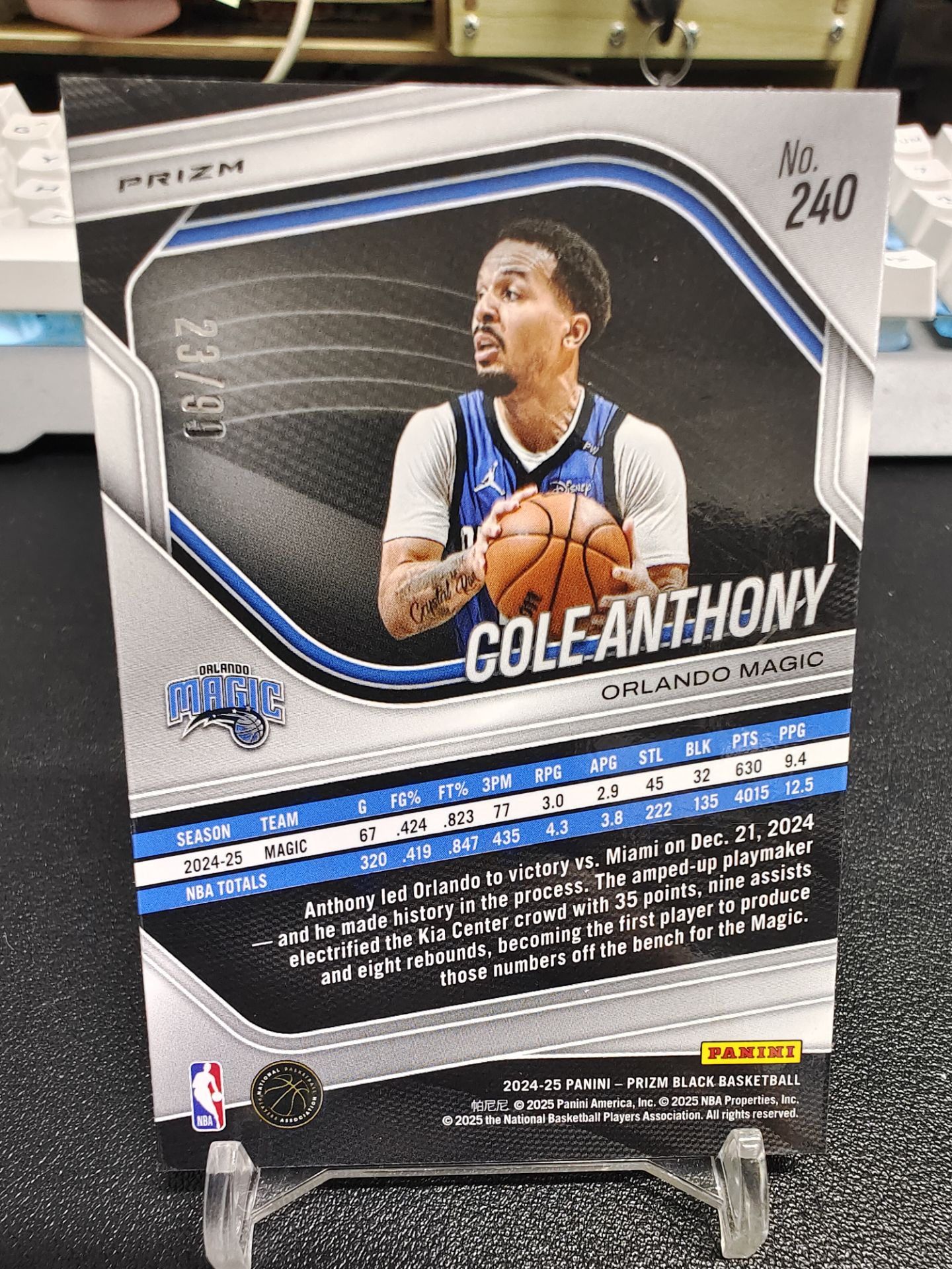 【浩行拍卖 截标预付82%】2024-25 Panini Prizm Black cole anthony 魔术 科尔 安东尼 紫折 折射 23/99编 专收必备 瑕疵看图「寒光」1104E02恁