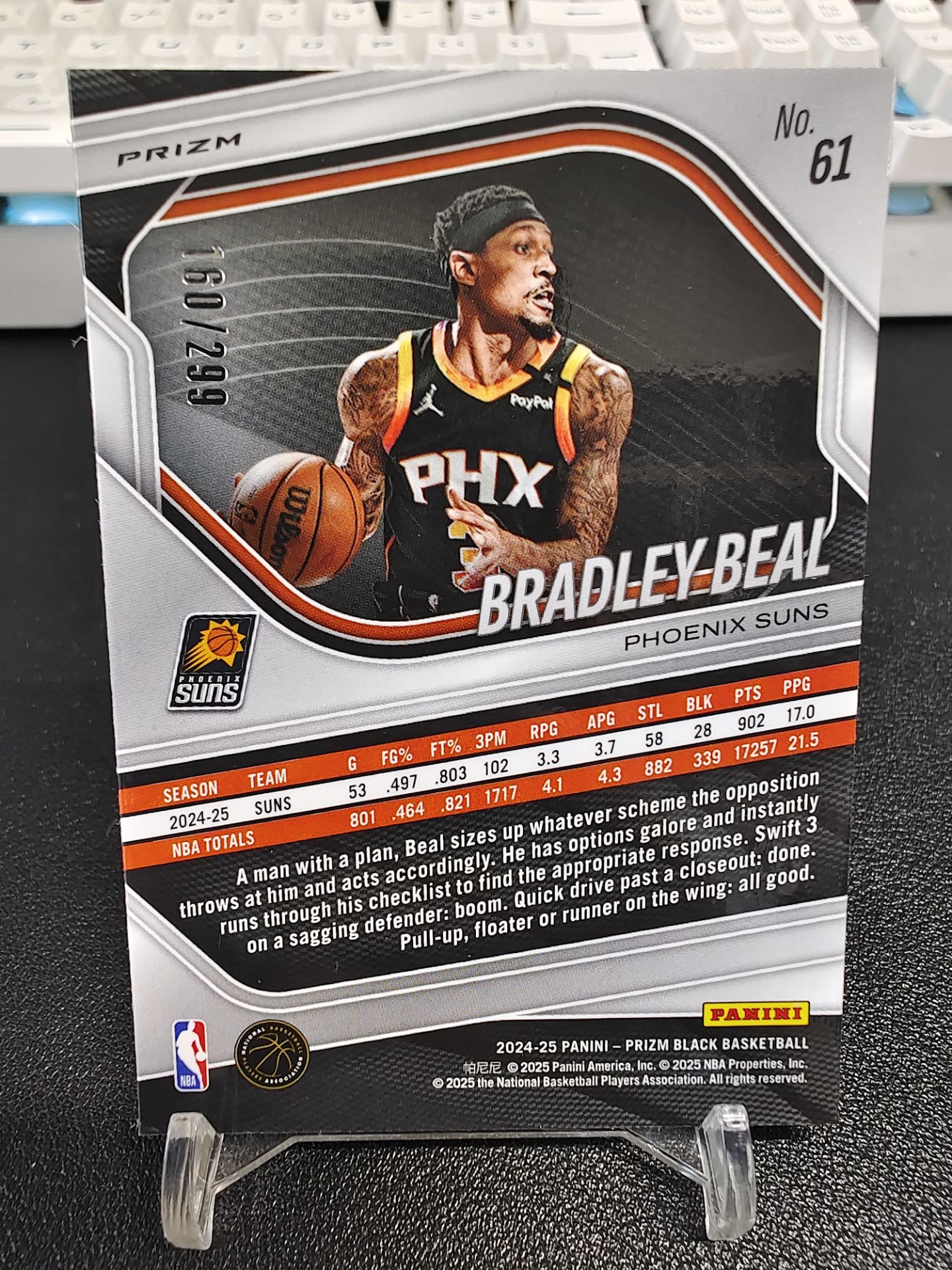 【浩行拍卖 截标预付82%】2024-25 Panini Prizm Black bradley beal 太阳 布拉德利 比尔 红折 折射 160/299编 专收必备 瑕疵看图「寒光」1104E02恁