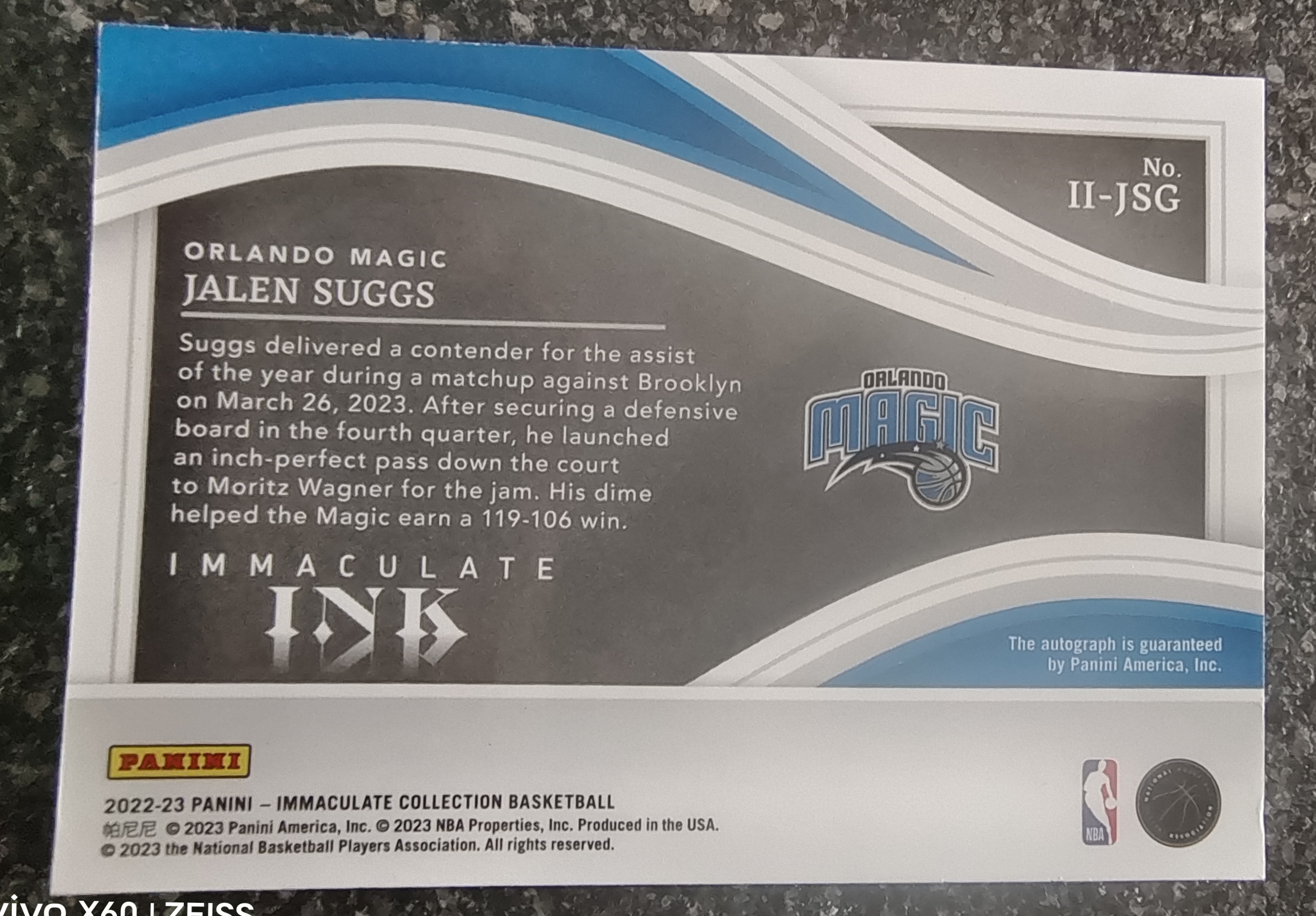 2022-23 Panini Immaculate Jalen Suggs 杰伦萨格斯 卡签 08/25编 魔术 小瓦格纳班切罗队友 高端爱咪咪 签字 卡品如图