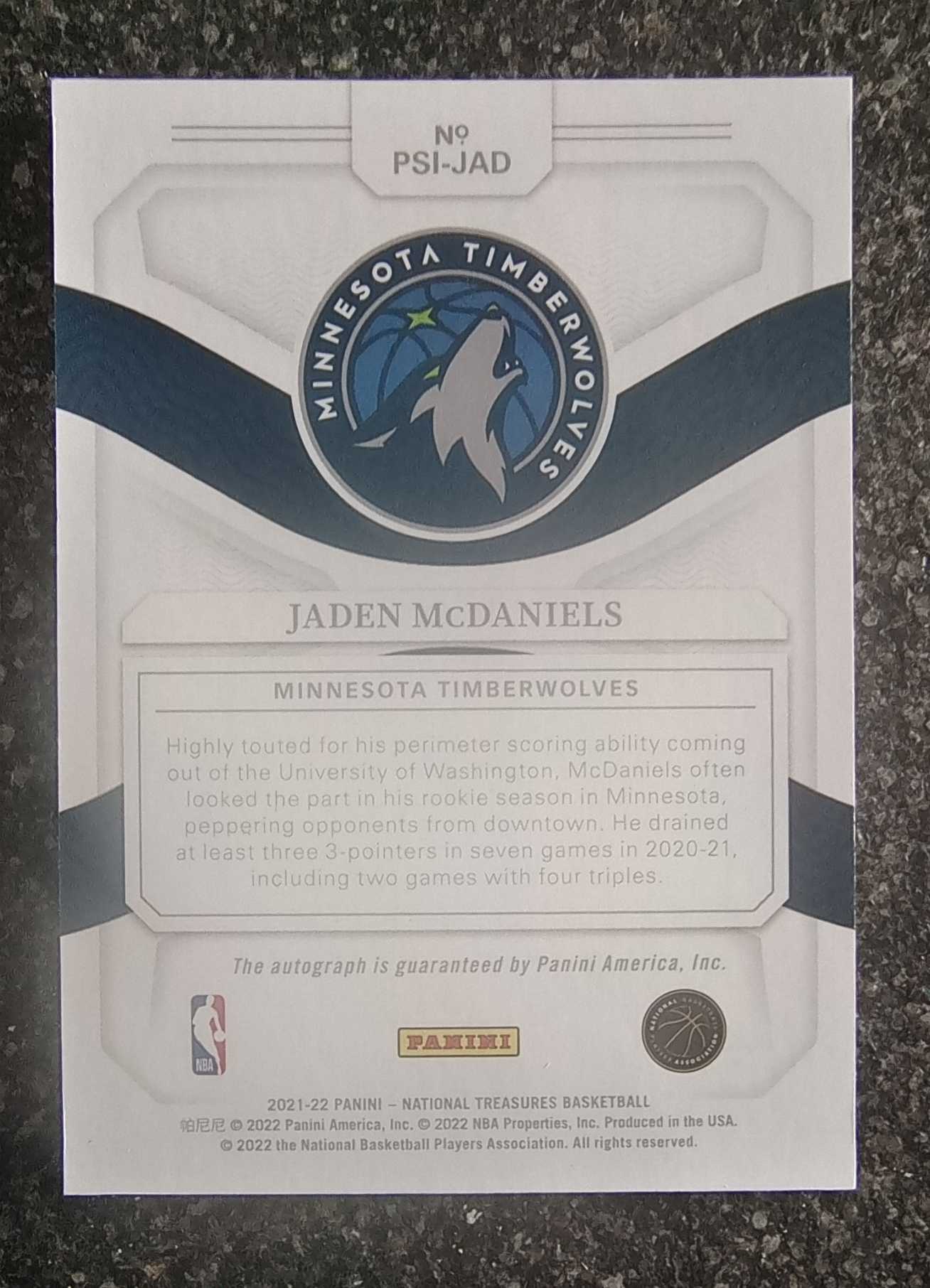2021-22 Panini National Treasures Jaden McDaniels 国宝 杰登麦克丹尼尔斯 卡签签字 35/49编 森林狼