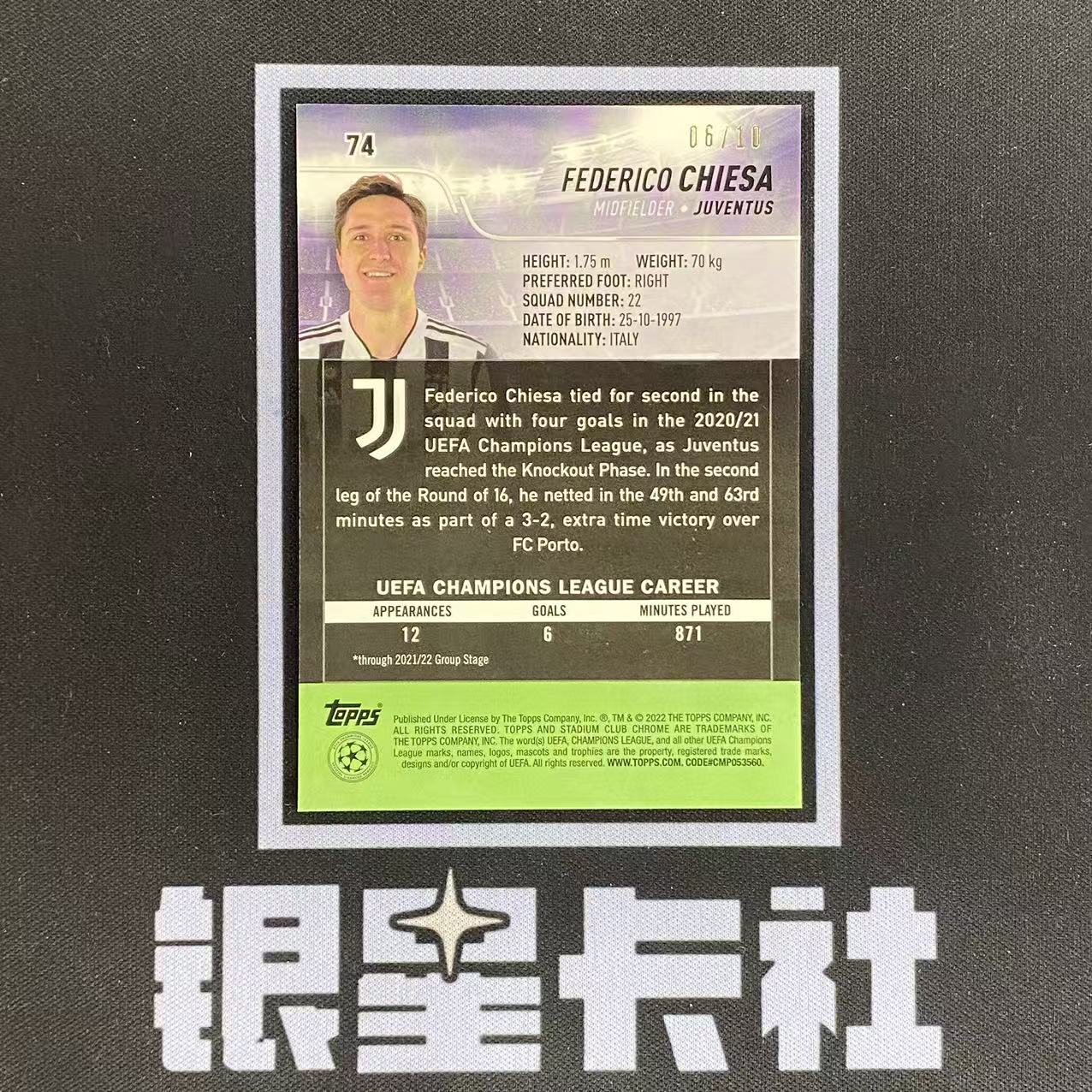 【银星拍卖】2022-23 Topps Chrome Stadium 竞技场 Federico Chiesa 基耶萨 06/10编 金闪电折 欧冠 TC 尤文图斯 意大利 利物浦 收藏必备 #闲