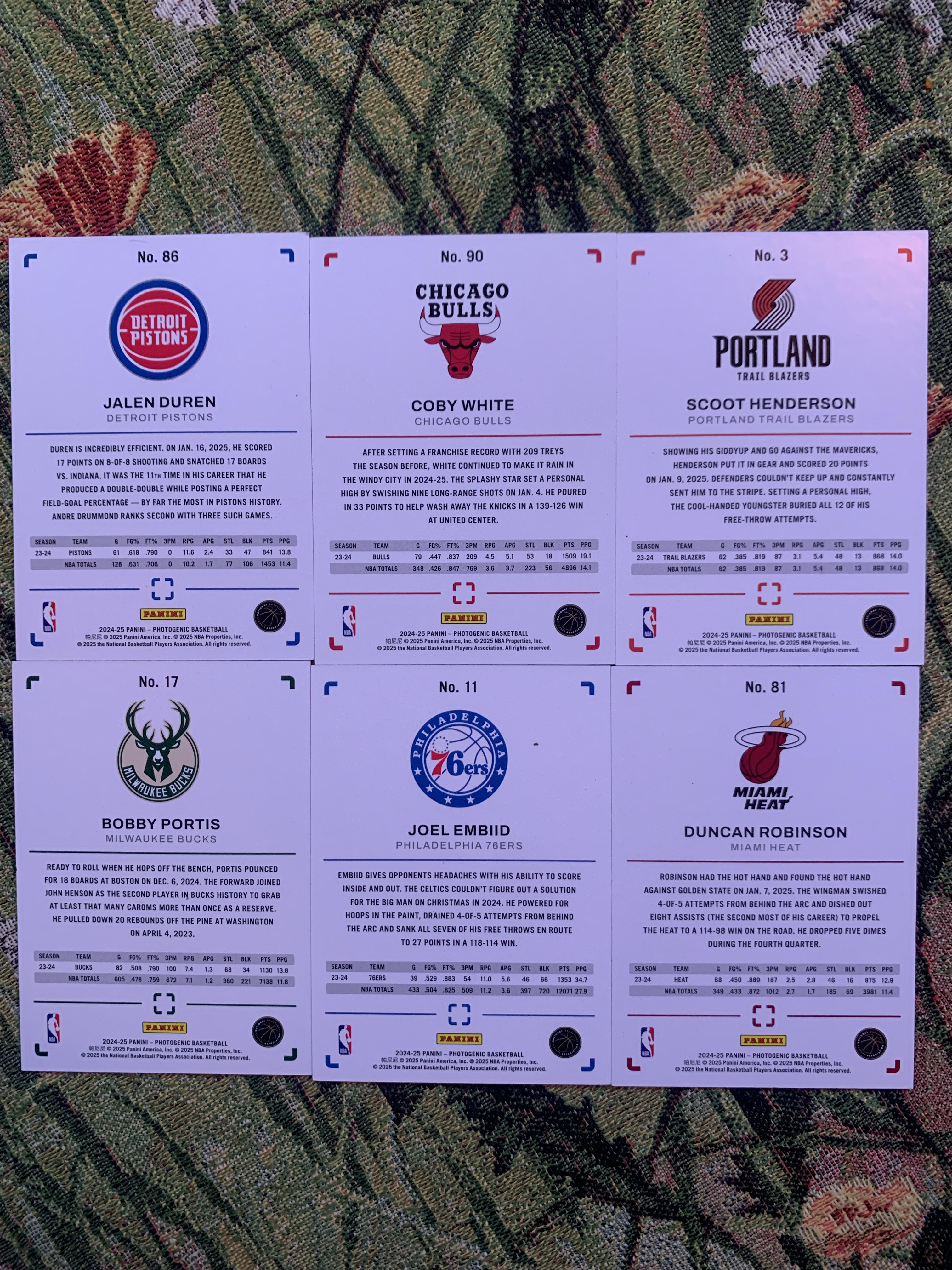 2024-2025 Panini Photogenic 上镜 杰伦杜伦 恩比德 邓肯罗宾逊 怀特 亨德森 波蒂斯 6张 lot 专收必备 wx