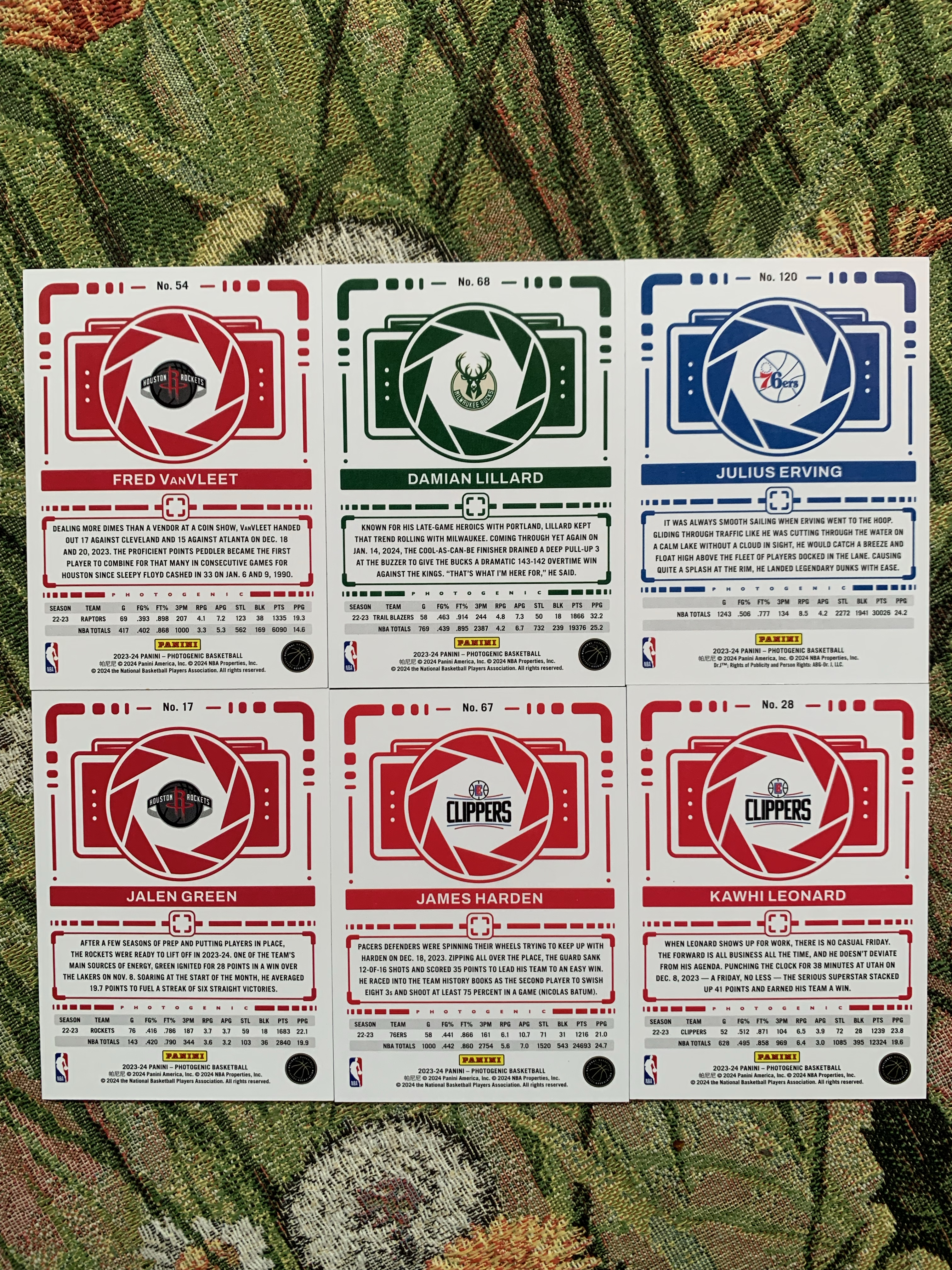 2023-2024 Panini Photogenic 上镜 利拉德 范弗利特 杰伦格林 朱利叶斯欧文 詹姆斯哈登 伦拉德 6张 lot 专收必备 wx