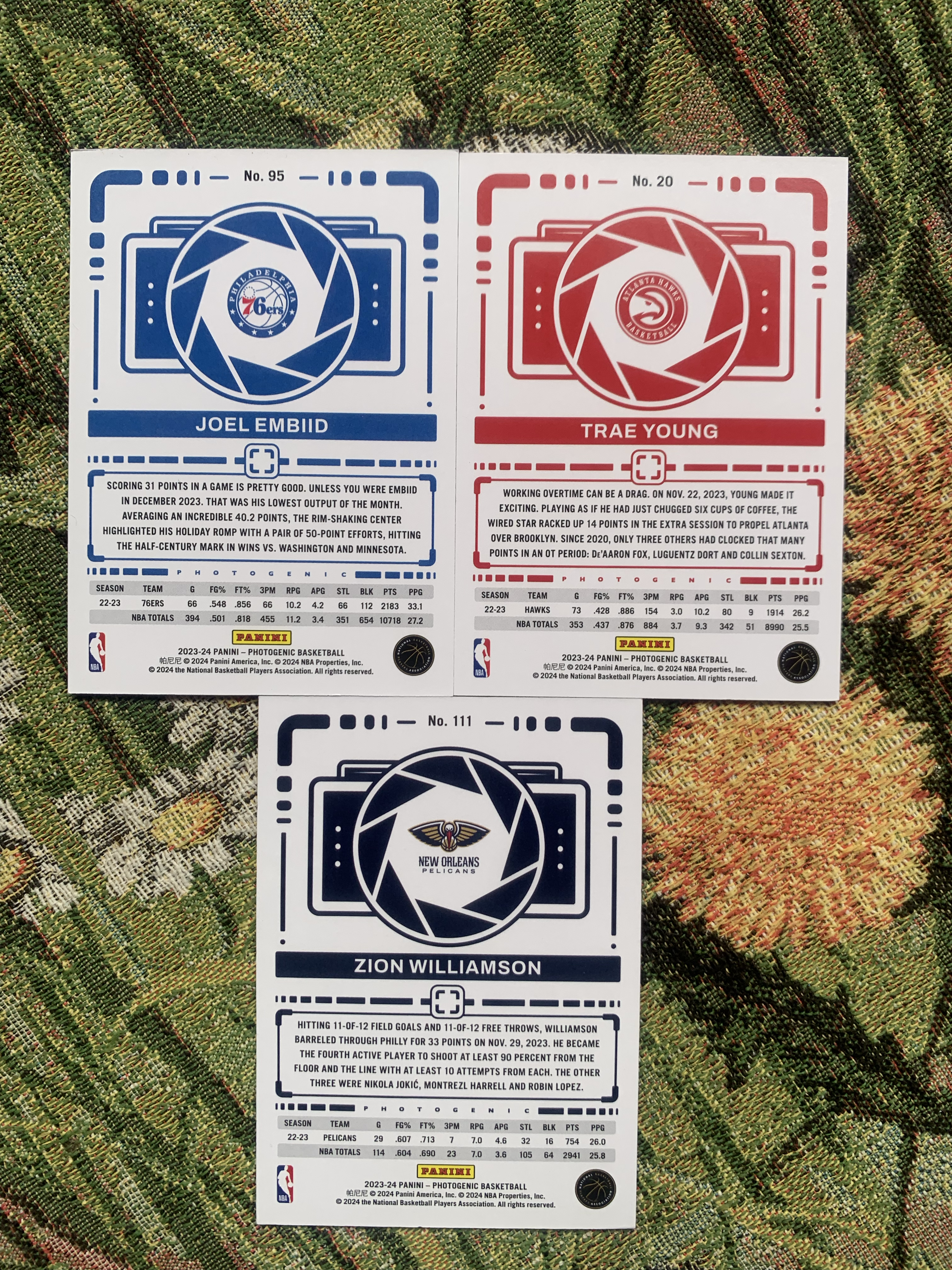 2023-2024 Panini Photogenic 上镜 乔尔恩比德 特雷杨 胖虎 锡安威廉姆斯 横版特卡 时刻 3张 lot 专收必备 wx