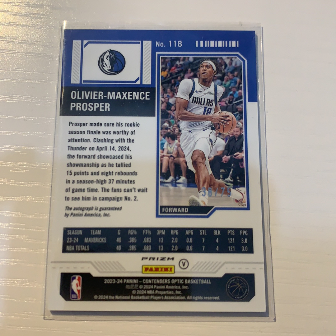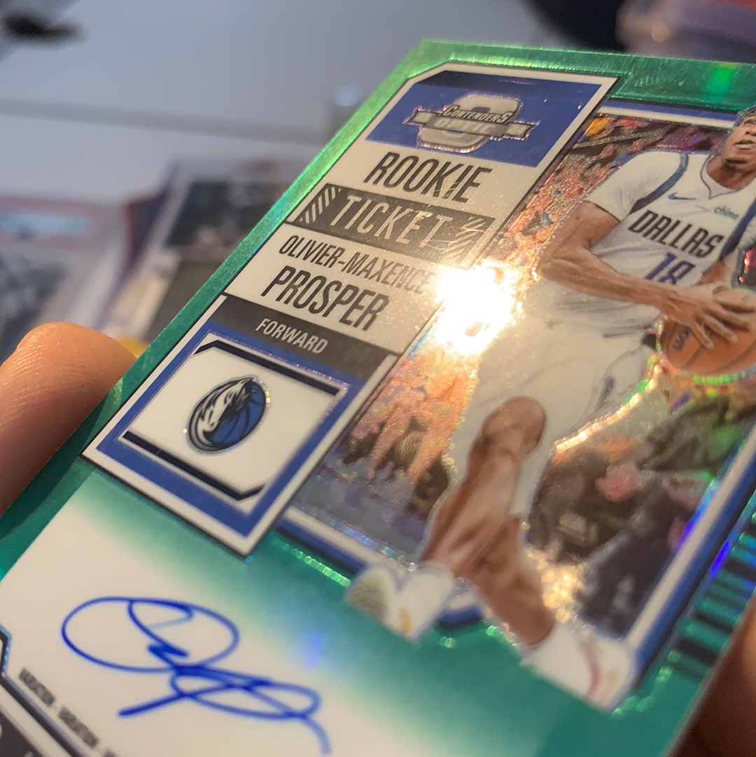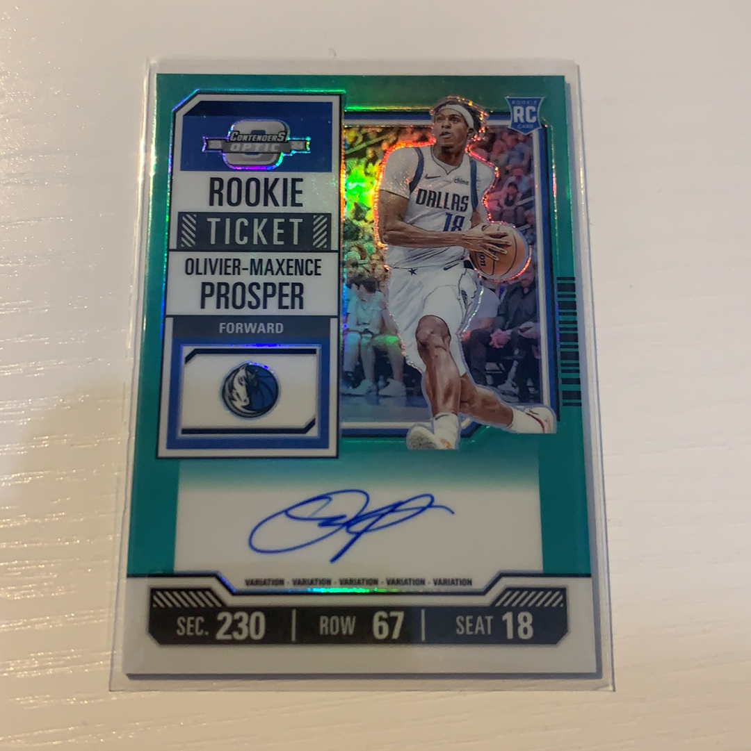 2023-24 Panini Contenders Olivier Maxence Prosper RC 新秀 普洛斯珀 普罗斯珀 球票 签 卡签 绿折 /75编 独行侠 灰熊 莫兰特队友 微瑕如图