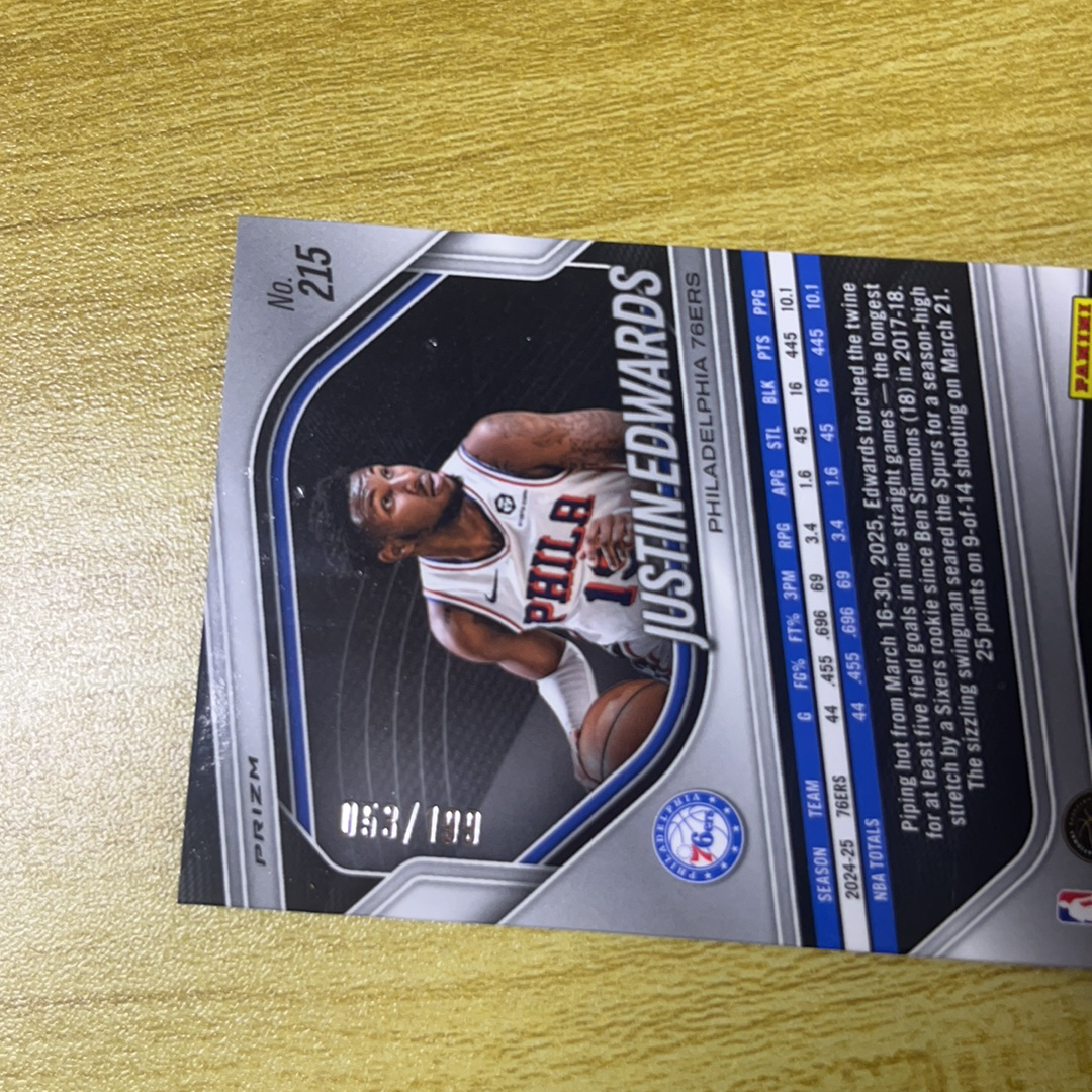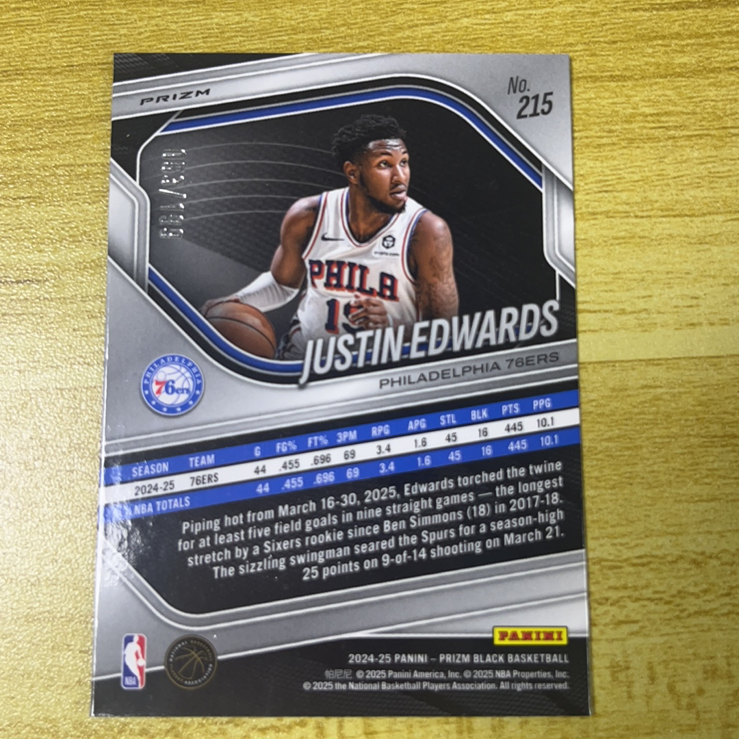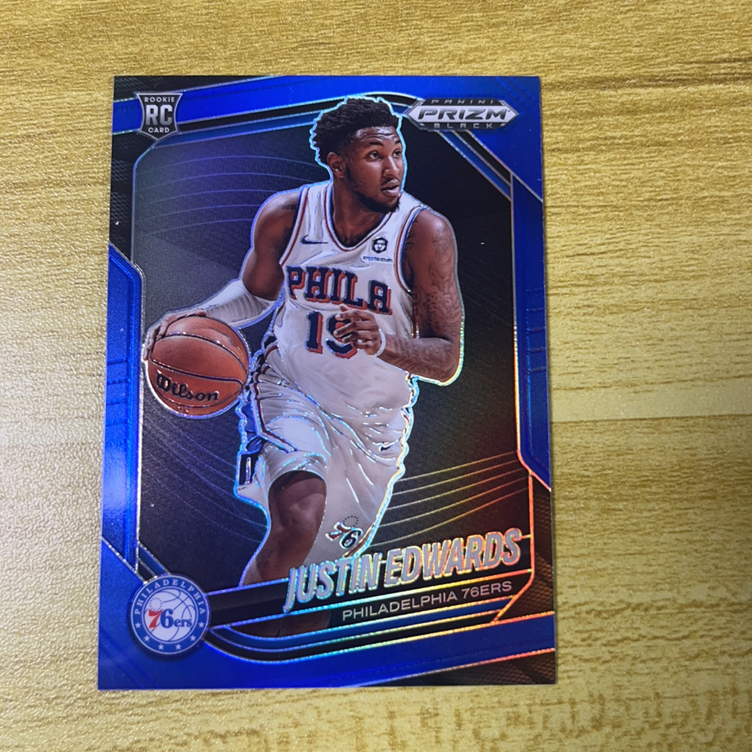 2024-25 Panini Prizm Justin Edwards RC pz 费城76人球队 RC新秀 贾斯汀爱德华兹 蓝折53/199编 卡品如图 牛