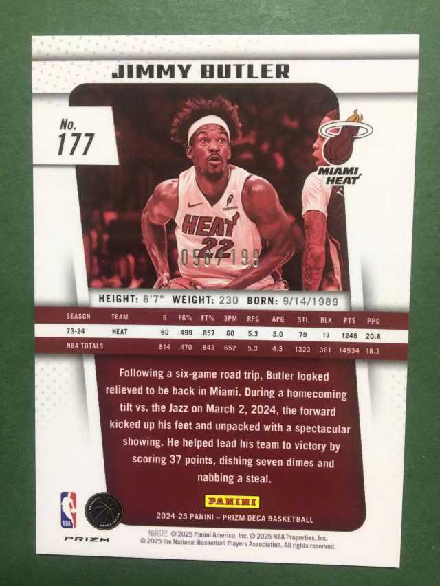 2024-25 Panini Prizm Jimmy Butler pz deca 复刻版 热火 吉米 巴特勒 199编 红折 折射 正base 公牛 勇士 库里队友 防守悍将 全明星 卡品如图#冯
