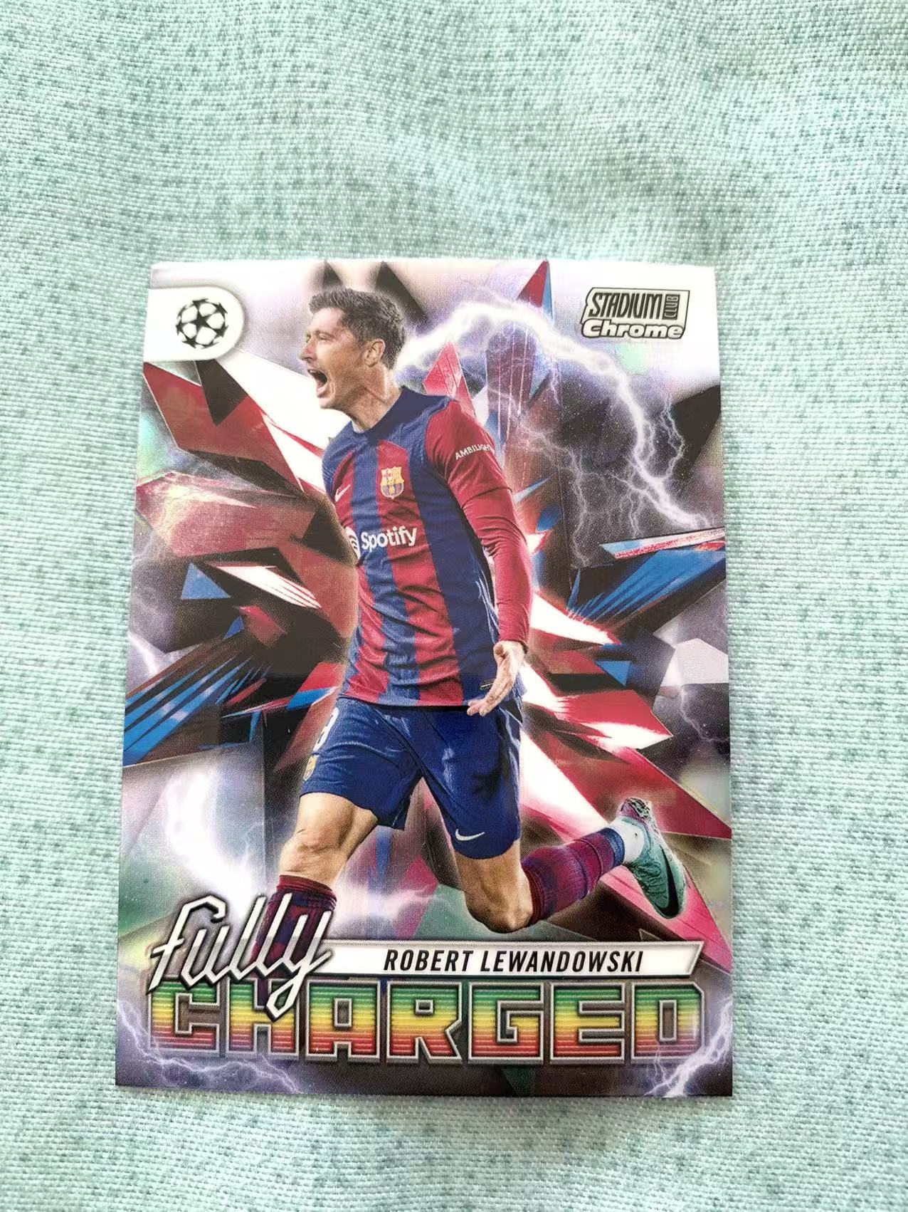 2024 Topps Stadium Club Chrome Robert Lewandowski 欧冠竞技场 巴萨 莱万多夫斯基 闪电特卡 银折 折射