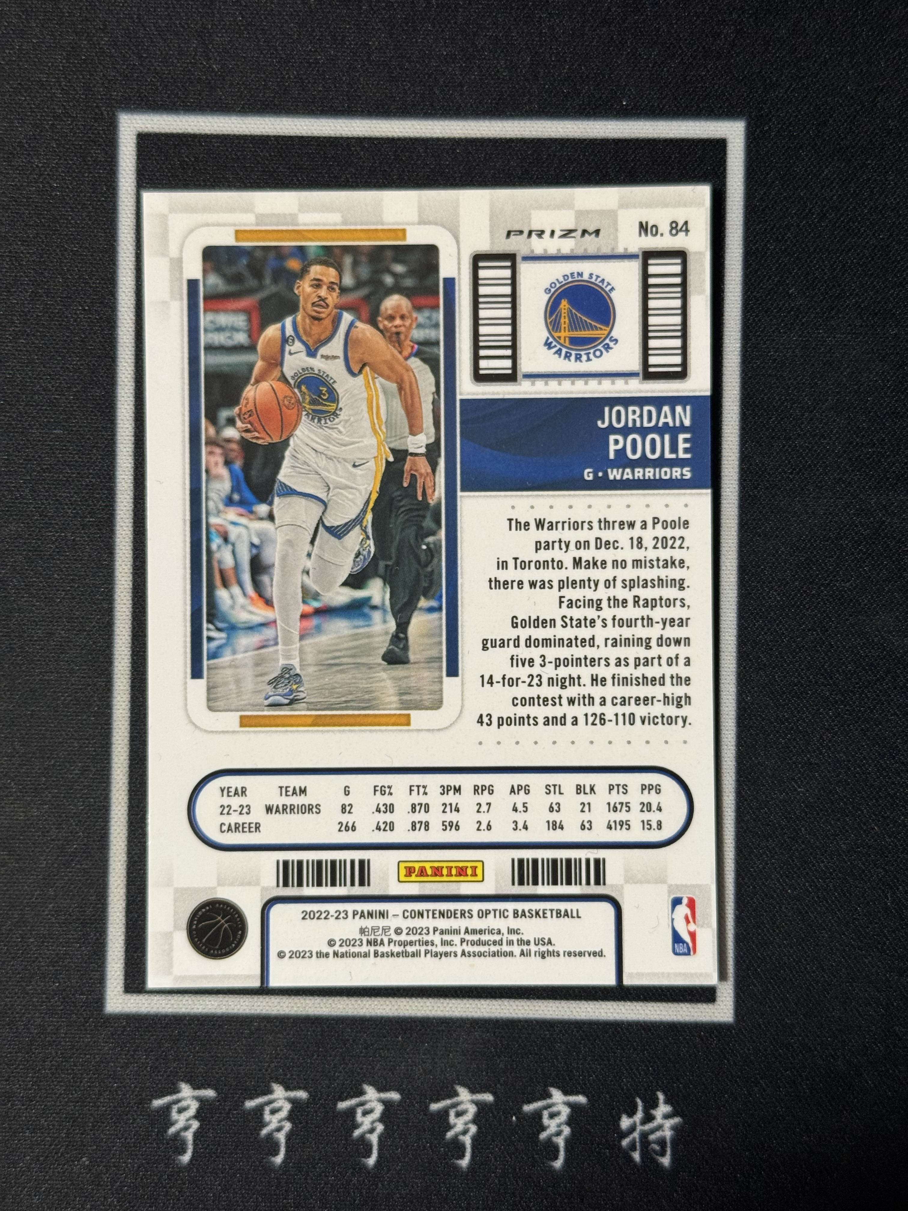 2022-23 Panini Optic Jordan Poole 勇士 乔丹普尔 op系列 黑折 潘多拉折 大比例 yzx