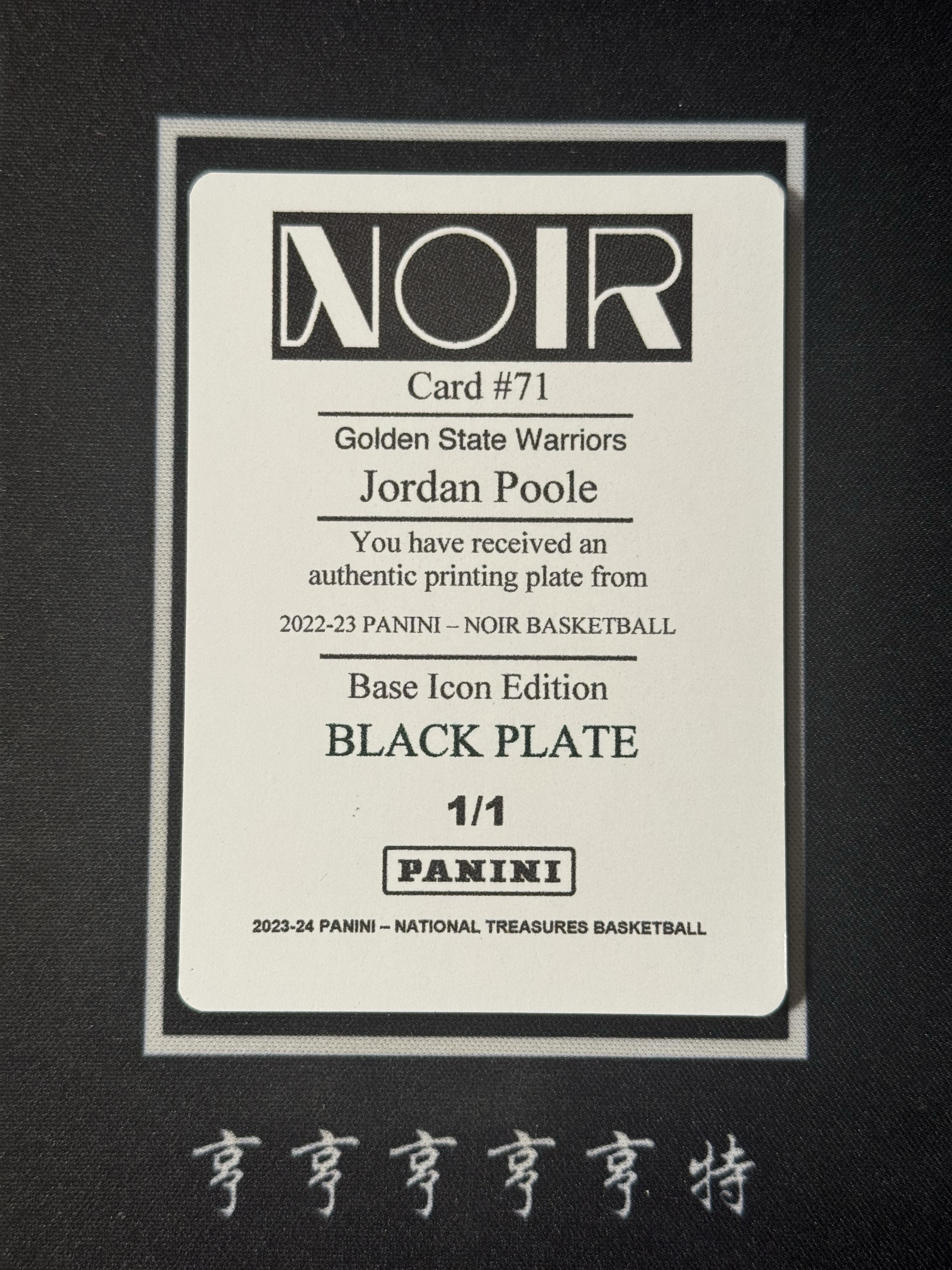 2023-24 Panini Noir Jordan Poole 勇士 乔丹普尔 noir系列 铁板 1/1 one of one 凑套必备 yzx