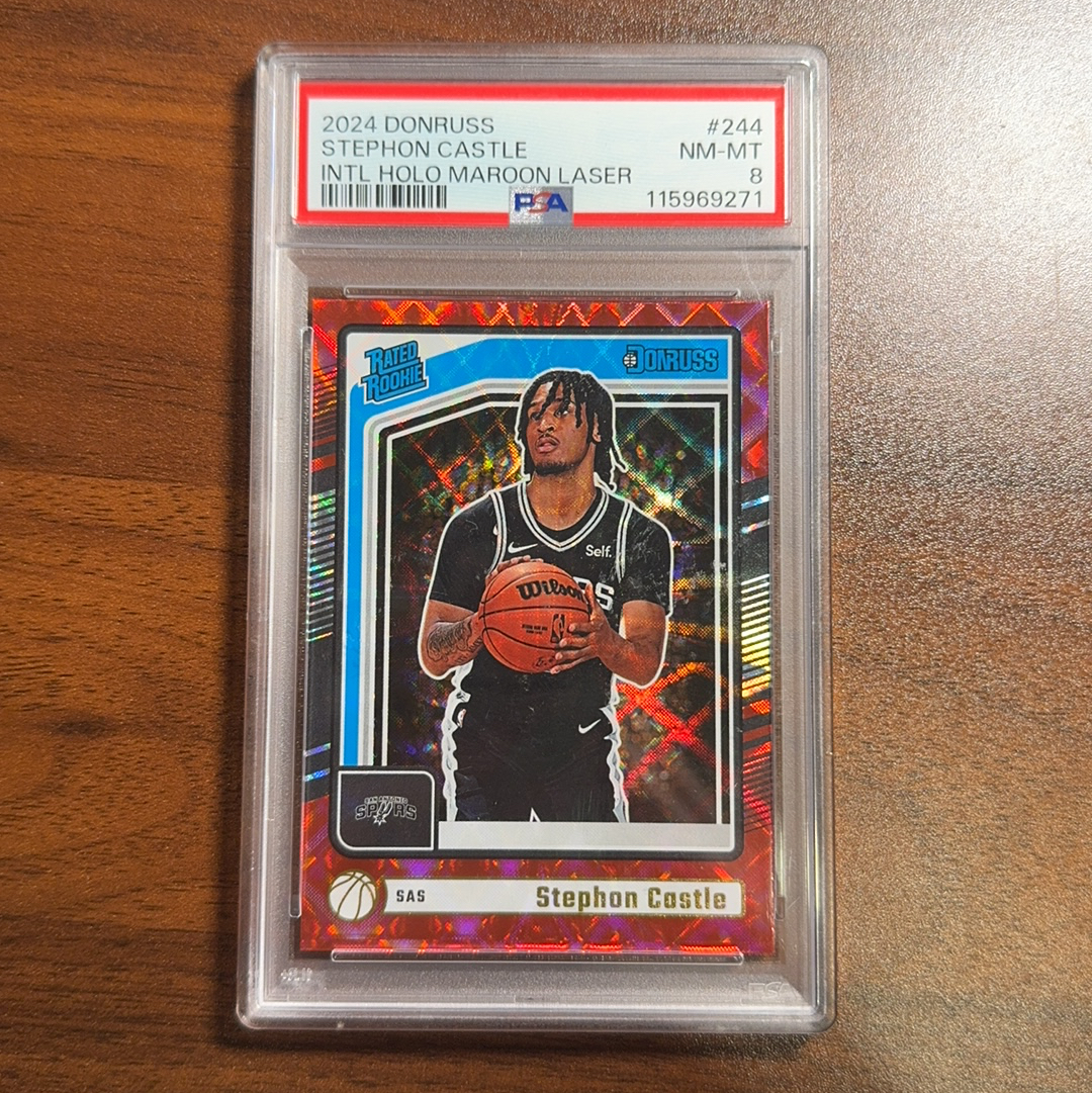 2024-25 Panini Donruss Stephon Castle 【杜蕾斯 新秀RC 斯蒂芬 卡斯尔 马刺 文班亚马队友 大热新秀 红宝石折 base PSA8分 完美品相 stu