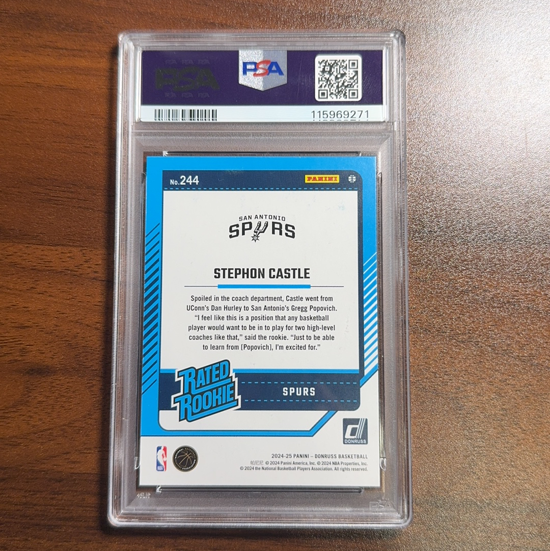 2024-25 Panini Donruss Stephon Castle 【杜蕾斯 新秀RC 斯蒂芬 卡斯尔 马刺 文班亚马队友 大热新秀 红宝石折 base PSA8分 完美品相  stu