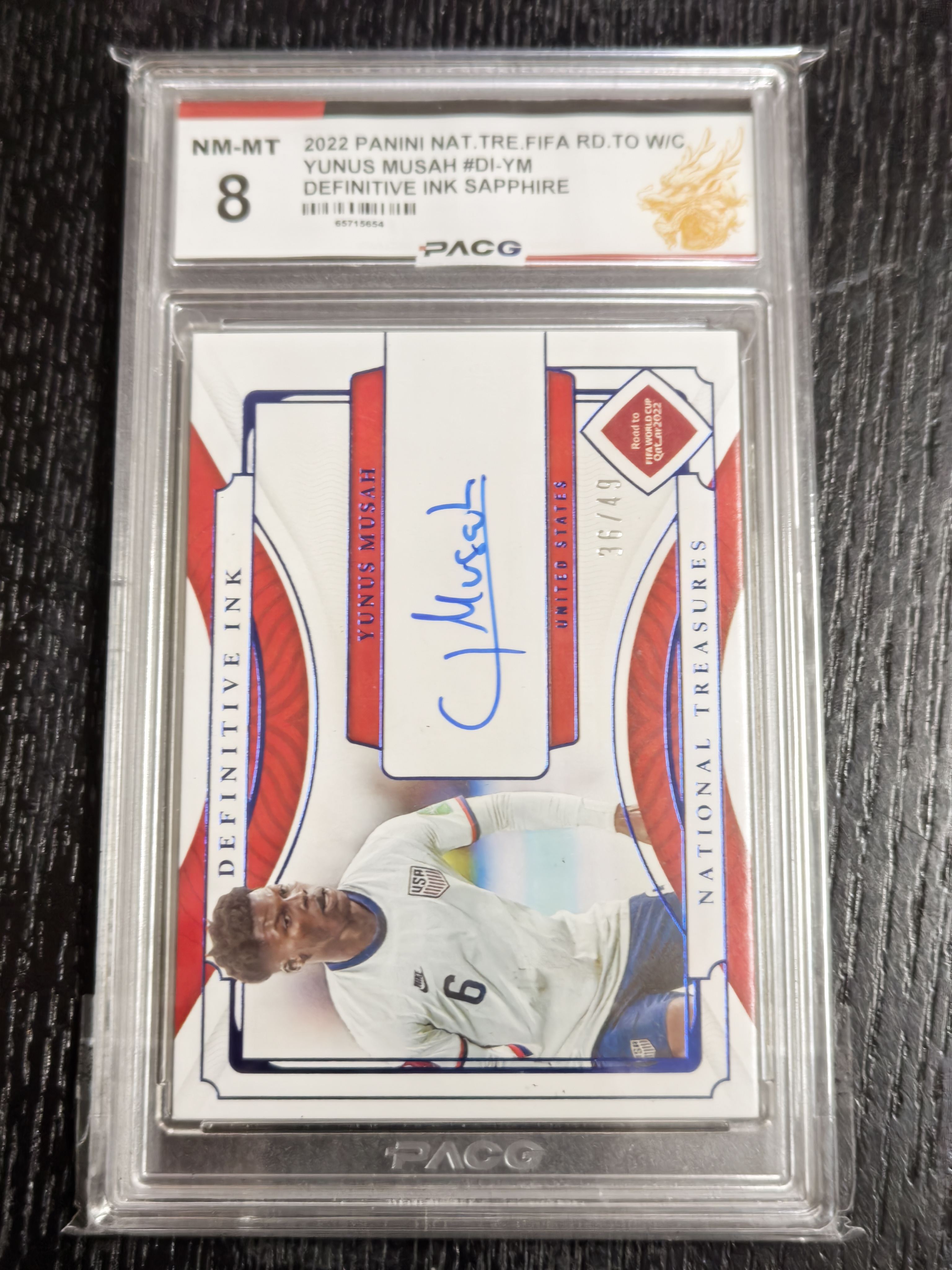 2022 Panini National Treasures Yunus Musah 尤努斯 穆萨 墨水签 签字 卡签 世界杯 36/49编 美国 国宝 PACG评级8分 签字可博P10