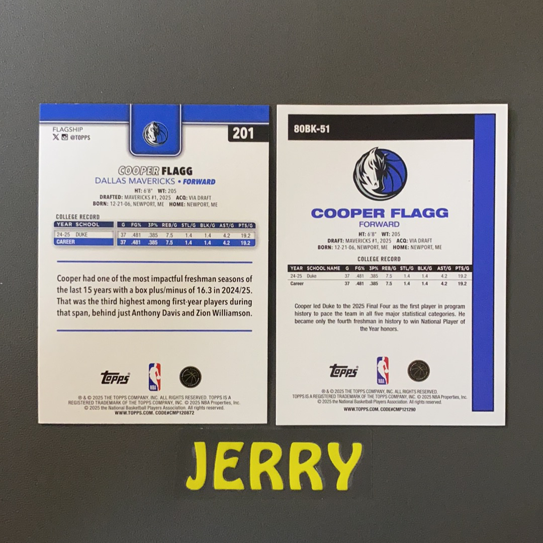 2025-26 Topps NBA Basketball Cooper Flagg RC tc 45周年 独行侠 库珀 弗拉格 新秀 状元 base 银折 碎钻折 折射 2张打包 卡品如图【雄鹰】