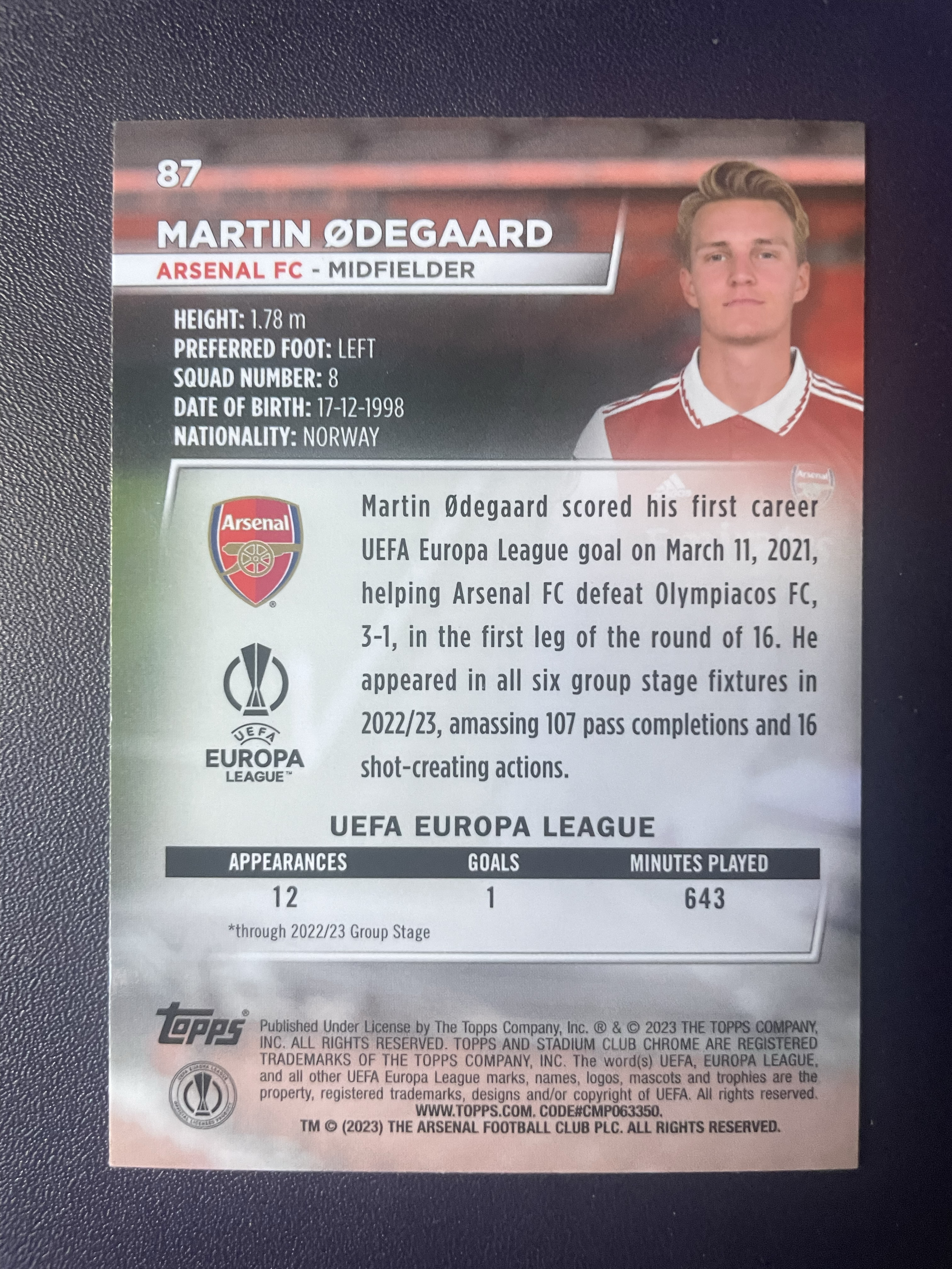 2023 Topps Stadium Club Chrome Martin Odegaard 马丁 厄德高 奥德加 阿森纳 挪威 竞技场 青棱镜折 折射 萨卡 哈弗茨 队友 实卡精美 细节如图不保卡品