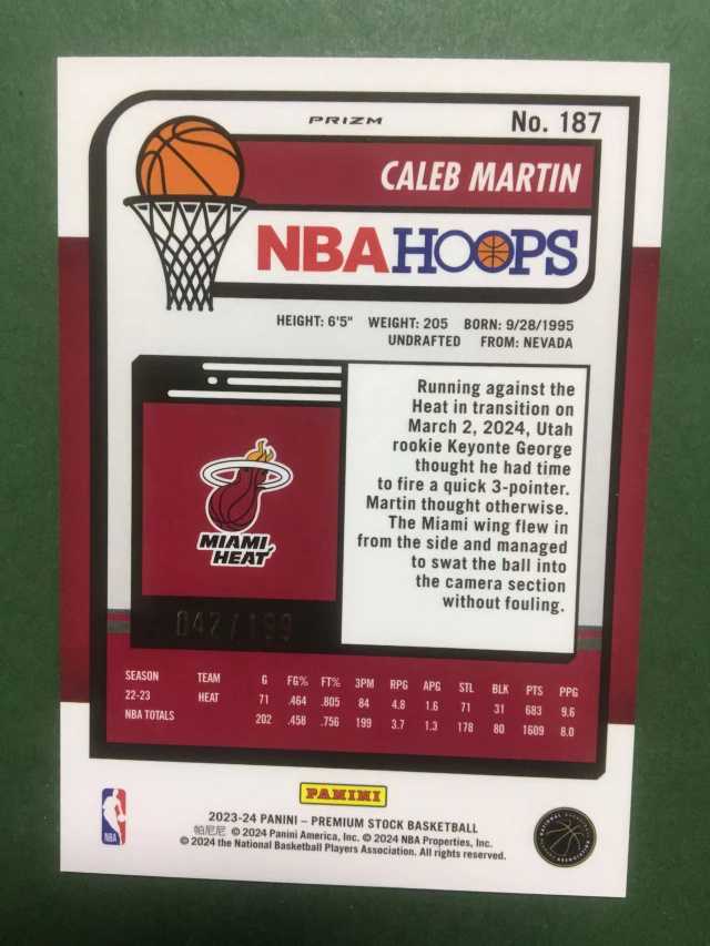 2023-24 Panini NBA Hoops Caleb Martin 热火 凯莱布 马丁 199编 地震折 变形虫折 红折 折射 base 阿德巴约 希罗队友 新赛季可期 卡品如图#张