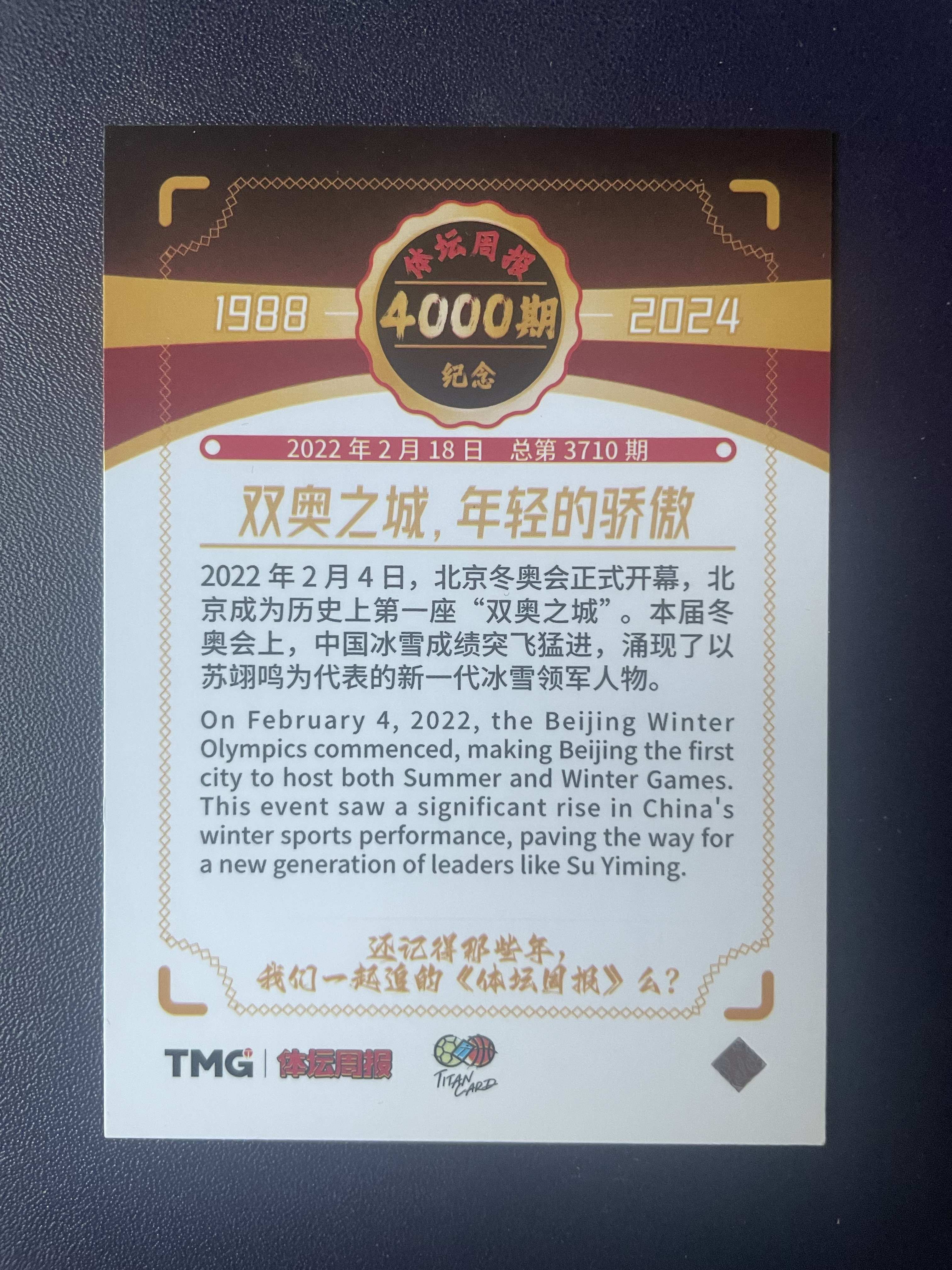 2024-25 体坛周报 TMG 苏翊鸣 苏翊鸣 单板滑雪 双奥之城 年轻的骄傲 冰雪领军人物 银折 折射 纪念意义非凡 收藏凑套必备 细节如图