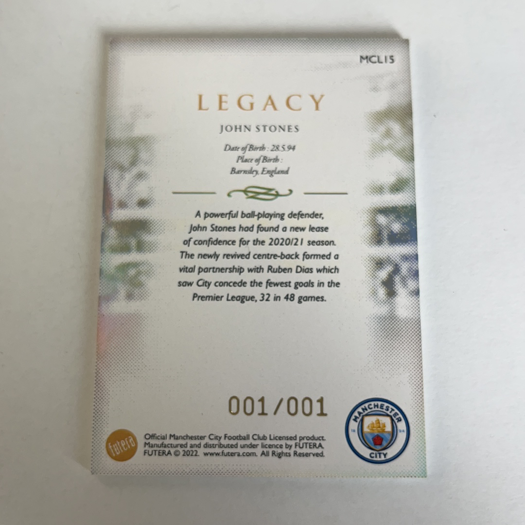 2022 Futera Futera Unique John Stones 约翰 斯通斯 一编 001/001编 曼城 英格兰 五冠王 英超四连冠 福特拉 1编 1/1 ofo 卡品如图 总进球