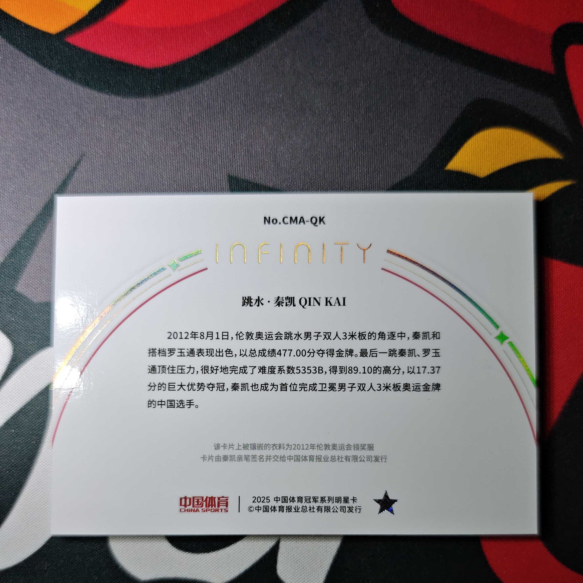 2025 奇卡 中国体育报业总社 Infinity 无限系列 秦凯 跳水运动员 奥运冠军 10编 金版 球衣签字 顺丰寄付