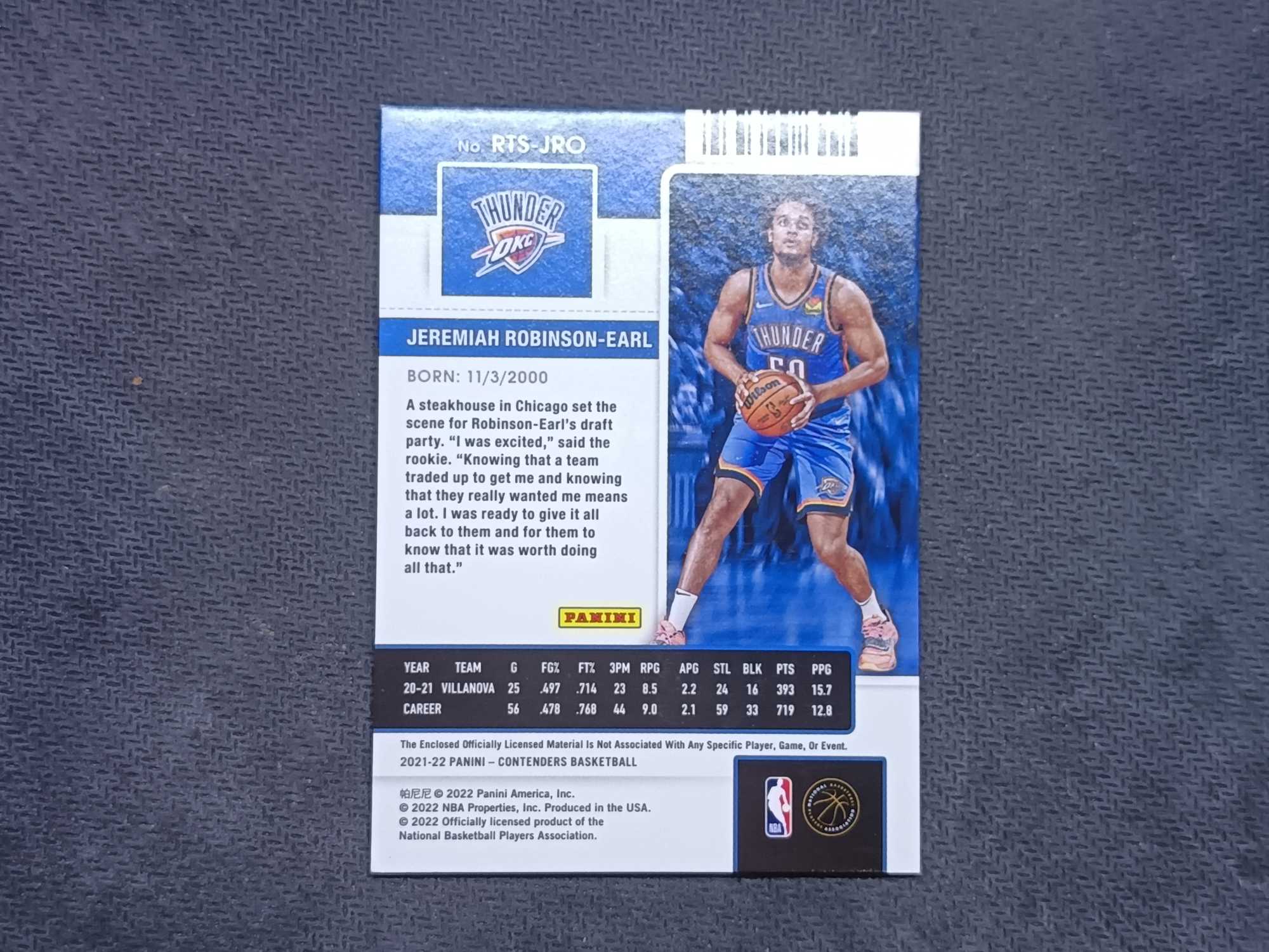 2021-22 Panini Contenders Jeremiah Robinson-Earl RC 罗宾逊 厄尔 新秀 球票 物料 实物 雷霆