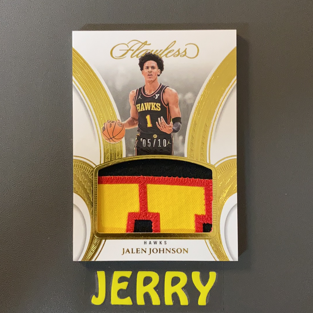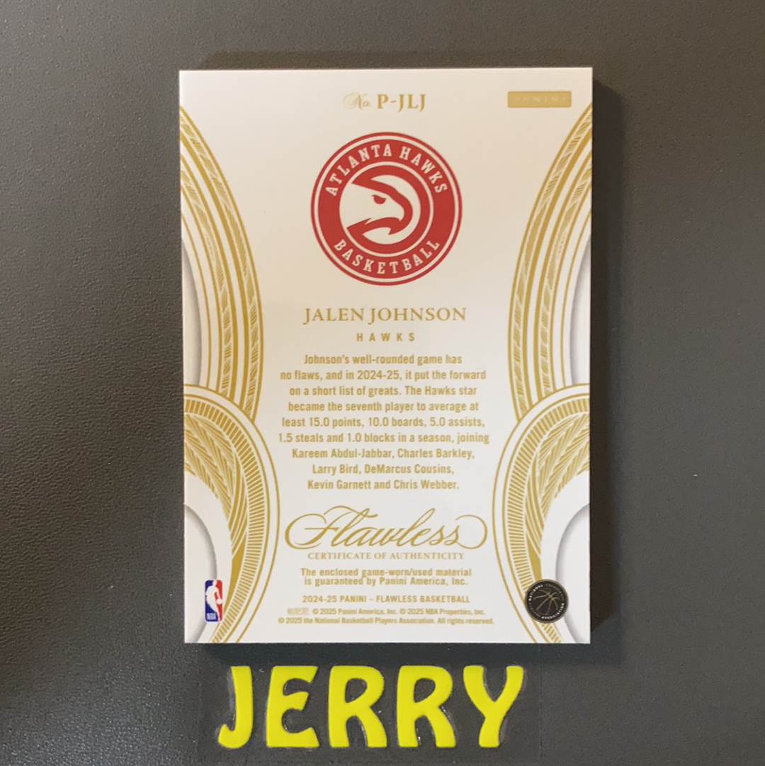 2024-25 Panini Flawless Jalen Johnson 手提 老鹰 杰伦 约翰逊 05/10编 金平行 大窗 Patch 球衣 三色物料 暴力切割 卡品如图【雄鹰】