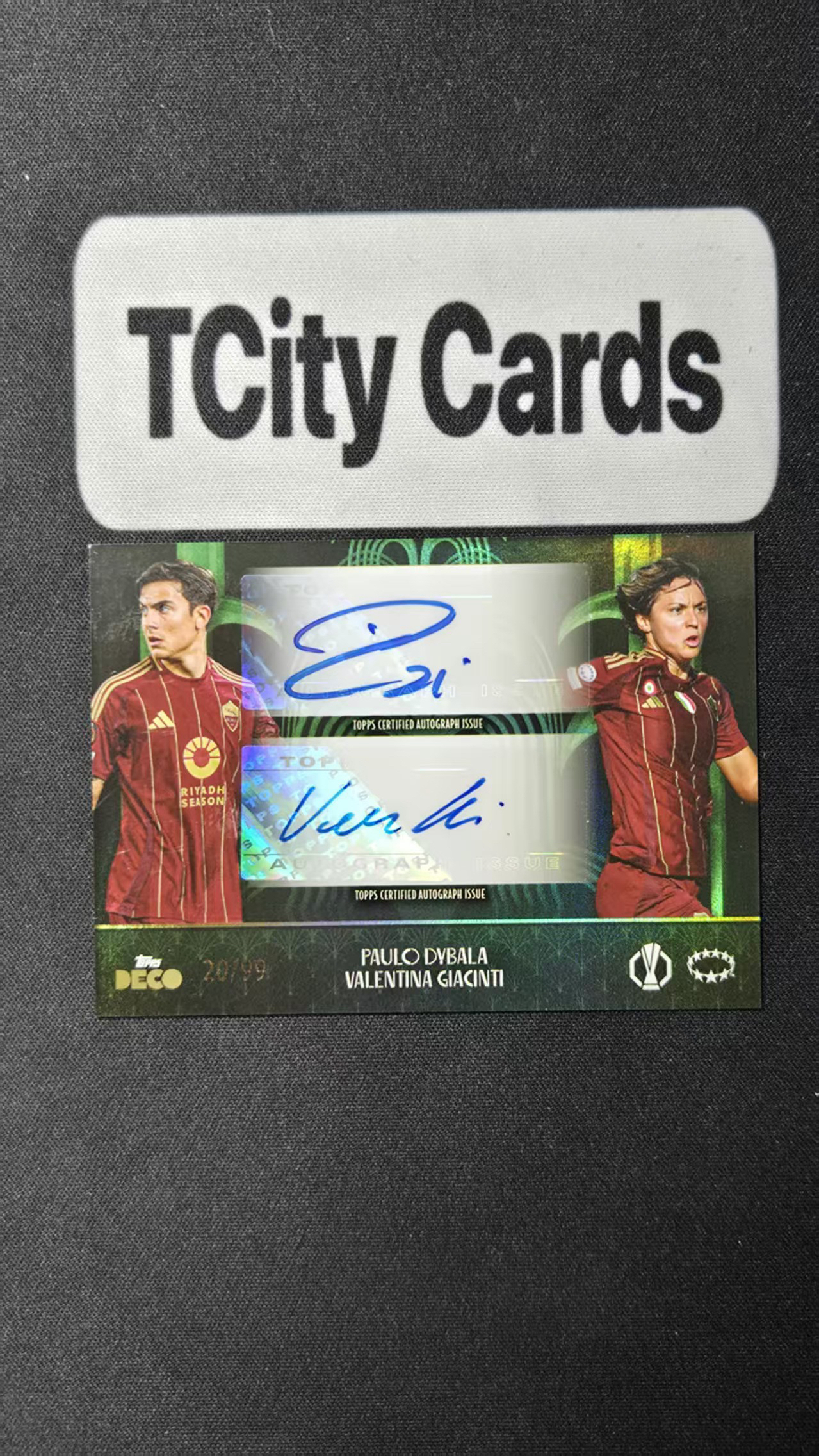 2024 Topps DECO Paulo Dybala 保罗 迪巴拉 小魔仙 罗马 瓦伦蒂娜 贾钦蒂 女足 意大利国家队 意甲 折射 绿平行 双人签 签字 99编 kk